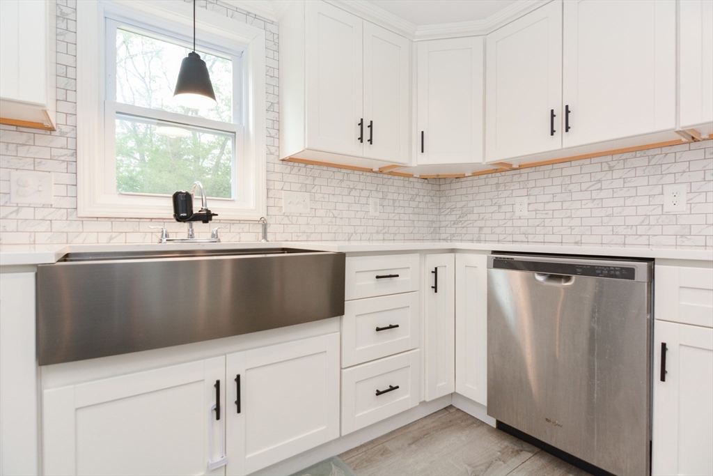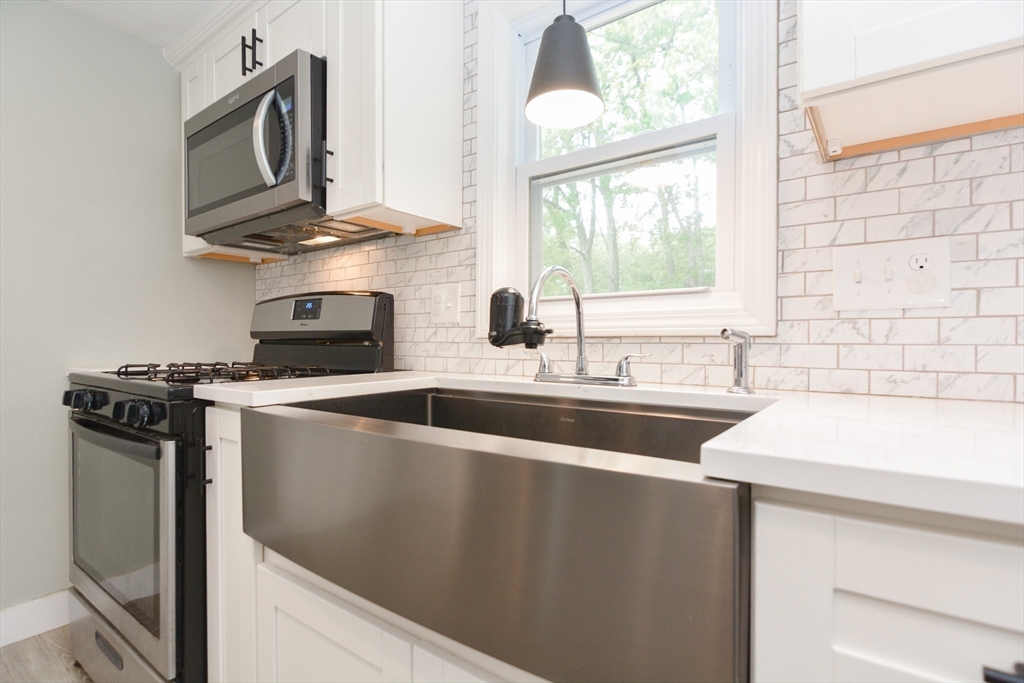 Welcome to 8 Roberts Road, where modern comfort meets easy living in one of Ashland’s more desirable neighborhoods. This updated Cape blends classic charm with today’s convenience and style. Enjoy a bright open layout with a modern kitchen featuring quartz counters, white cabinetry, and soft-close drawers flowing into a dining area and sun-filled living room with cozy fireplace. The first floor offers a flexible bedroom or home office and full bath, while upstairs includes two spacious bedrooms and a remodeled bathroom. Hardwood floors add warmth, and the private fenced backyard with shed is perfect for relaxing or entertaining. Major updates include high-efficiency mini splits (2024), new vinyl windows, hot water heater, septic system, repointed chimney, and solar panels to lower utility costs. Convenient to Framingham commuter rail, Routes 9, 495, and the Pike— Tenant to have excellent credit and references. Month to month tenancy available.
