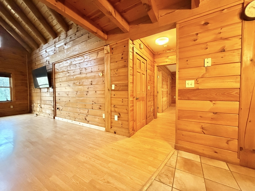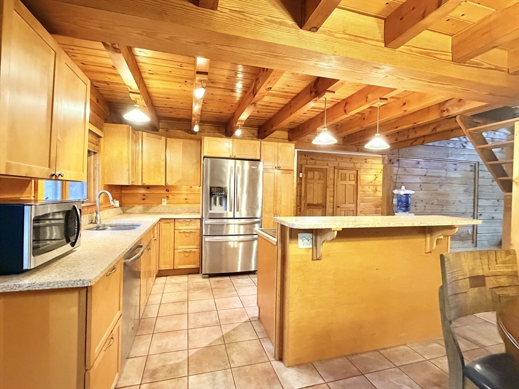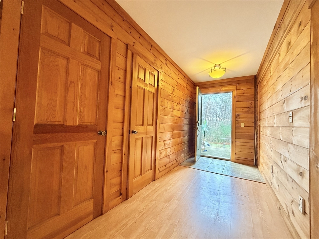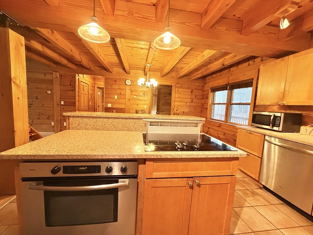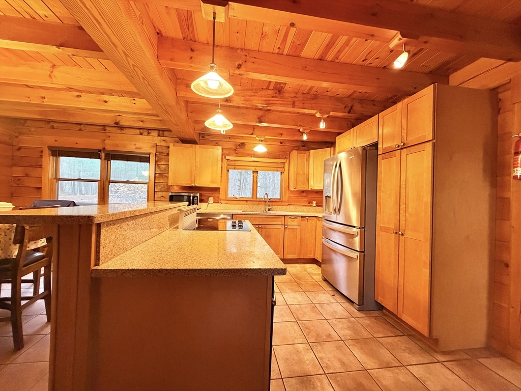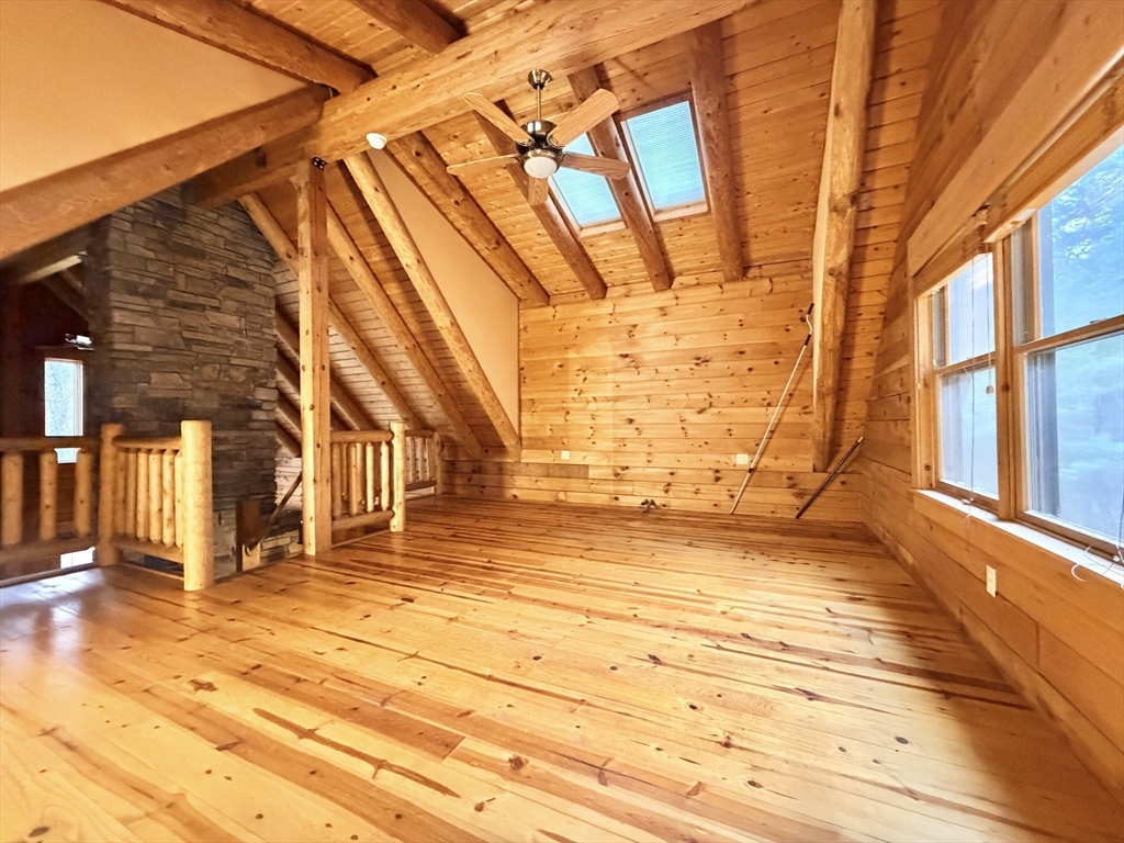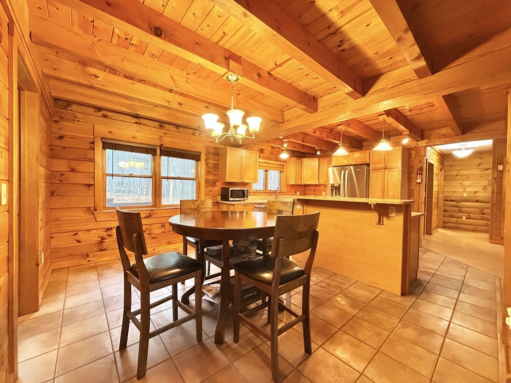 Quality materials used thru-out this custom designed home. you will find this spacious and inviting custom-built Log that has been lovingly maintained by the owners. True single-level living that offers 3 bedrooms and 2 baths (master bath) with 1st floor laundry and attached 2-car garage. Hydronic Floor Heat(Radiant), Wood Stove. One of the most beautiful towns in New England, this Well Maintained Log home is privately set 300' off the road on over 28 acres of land, complete with stonewalls, trails for hiking or ATV's and 610' of frontage. Nature & wildlife, a mile to Gate 43 of the Quabbin Reservoir. The moment you step inside of this home you feel warm and welcomed. The Sun filled Great Room with a Cathedral Ceiling, stone hearth and wood stove is open to the dining room and Gourmet kitchen that offers wood ceiling, a center island with breakfast bar and appliances to remain, the gorgeous custom built staircase leads to the loft with skylights.