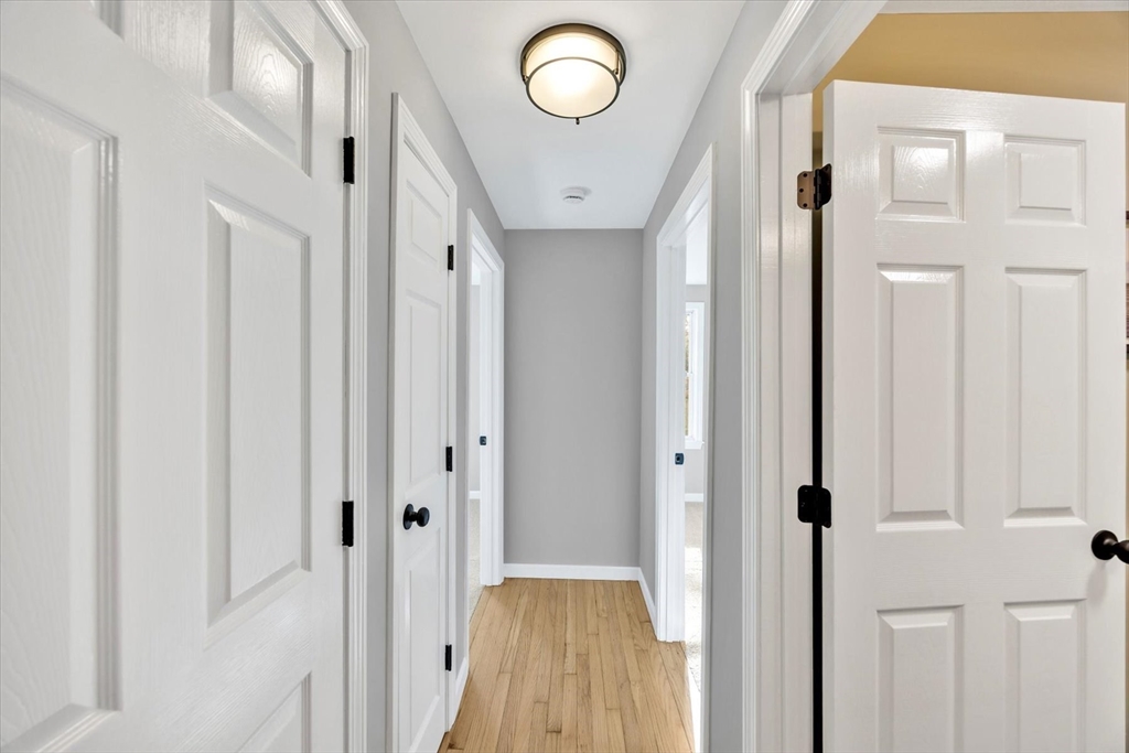 Completely renovated and an exceptional value, this four-bedroom, one-full-bath Cape-style home offers modern updates in a private, peaceful setting at the end of a cul-de-sac lane. The first floor features newly finished hardwood floors in the living room, kitchen, and hallway, along with a brand-new kitchen and a fully renovated bathroom. Two bedrooms are located on the first floor, with two additional bedrooms upstairs, providing a flexible and functional floor plan. Enjoy outdoor living with a deck off the kitchen, a backyard storage shed, and a newly installed fence along the property line. Additional updates include a paved driveway, all-new window screens, and recently installed cedar shingle siding. The roof also appears to be in very good condition. The basement, accessible from the interior, is clean and freshly painted, features washer/dryer hookups, and offers a bulkhead with a weather-resistant basement door for convenient exterior access. This move-in-ready home has been
