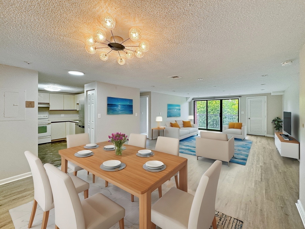This beautifully updated 2-bedroom, 2-bathroom apartment combines modern sophistication with practical convenience. Upon entering, you'll find a spacious, sunlitliving area featuring sleek hardwood floors. The open-concept design seamlessly connects the living, dining, and kitchen areas, perfect for entertaining or enjoyinga relaxed lifestyle. Expansive windows bathe the room in natural light and open up to a private deck. The primary bedroom offers a large walk-in closet and aluxurious en-suite bathroom. The second bedroom is generously sized and versatile, with easy access to a second full bathroom that includes a bathtub and stylishfinishes. Additional highlights include in-unit laundry, central air conditioning, and a private balcony overlooking the surrounding area. Residents can also enjoycommunity amenities like an inground pool and dedicated parking. Ideally located across from Wellington MBTA Station and just a few blocks from Assembly Row!