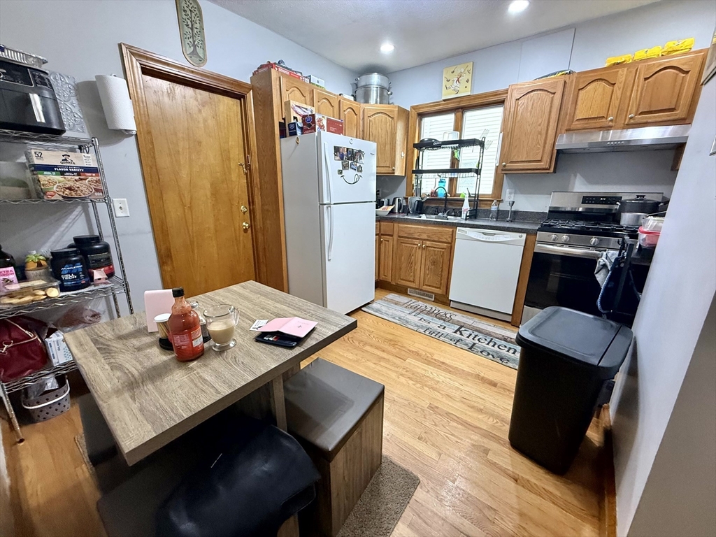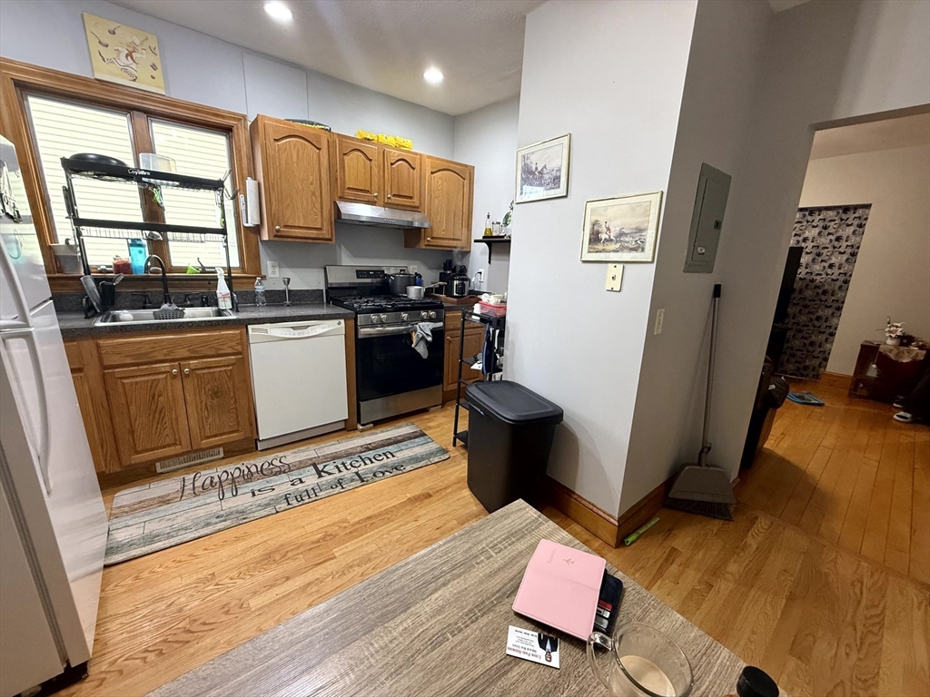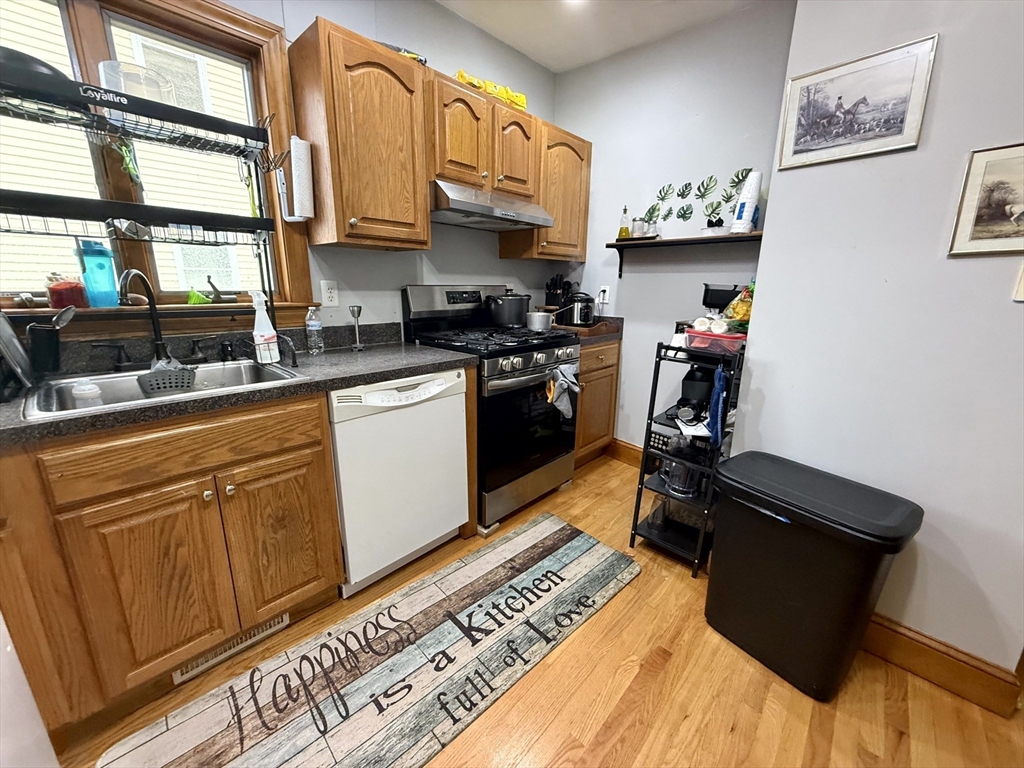 Available 1/1! Spacious 2 bedroom, 1 bathroom apartment on the first floor featuring high ceilings and beautiful hardwood floors throughout. This well-proportioned home offers a large living room and dining room perfect for entertaining or relaxing. The kitchen comes equipped with an updated range and dishwasher for modern convenience. Enjoy your front porch or cozy back yard - ideal for morning coffee or watching the neighborhood. Two off-street parking spaces included. 2 Off-street parking spaces. Cats Negotiable. Required up-front: First and Last months' rent. (Photos of empty rooms are of nearly identical 2nd-floor unit.)