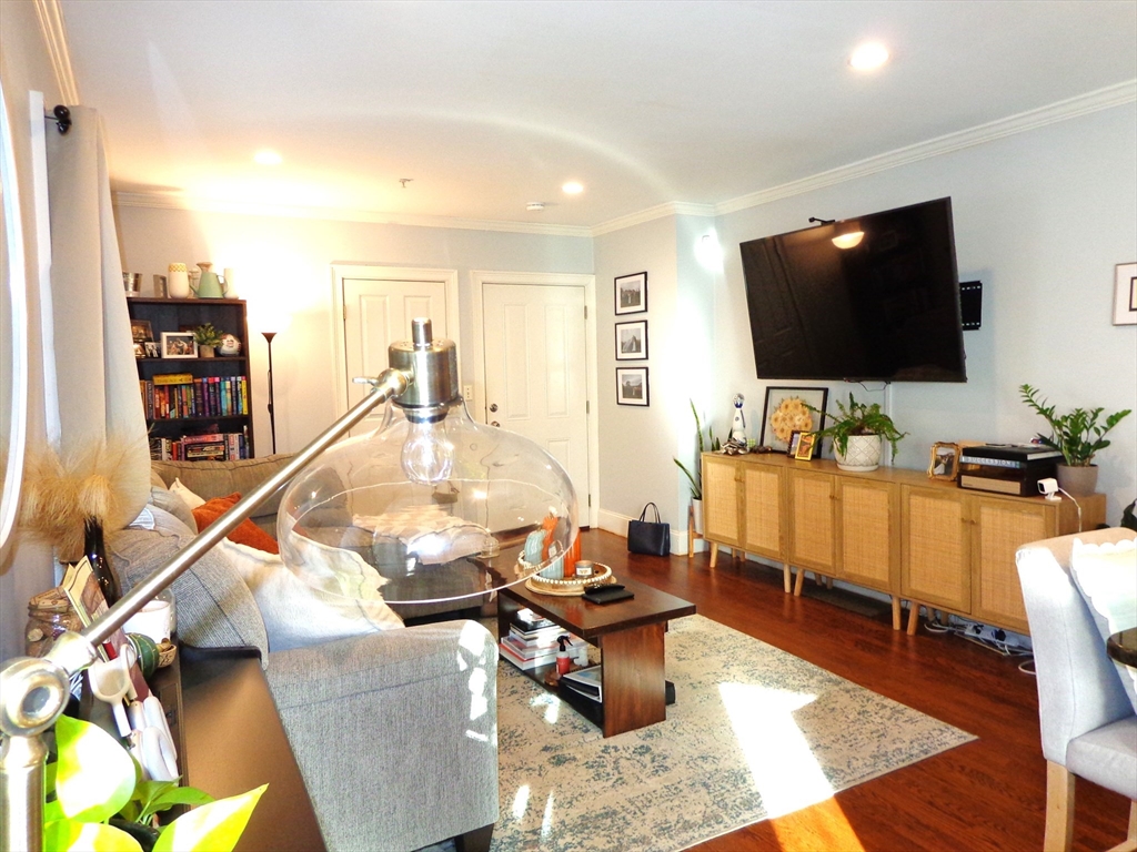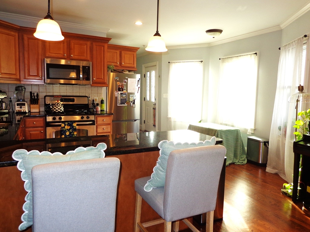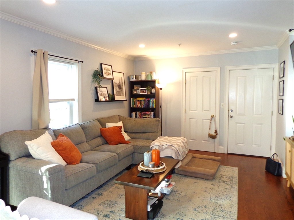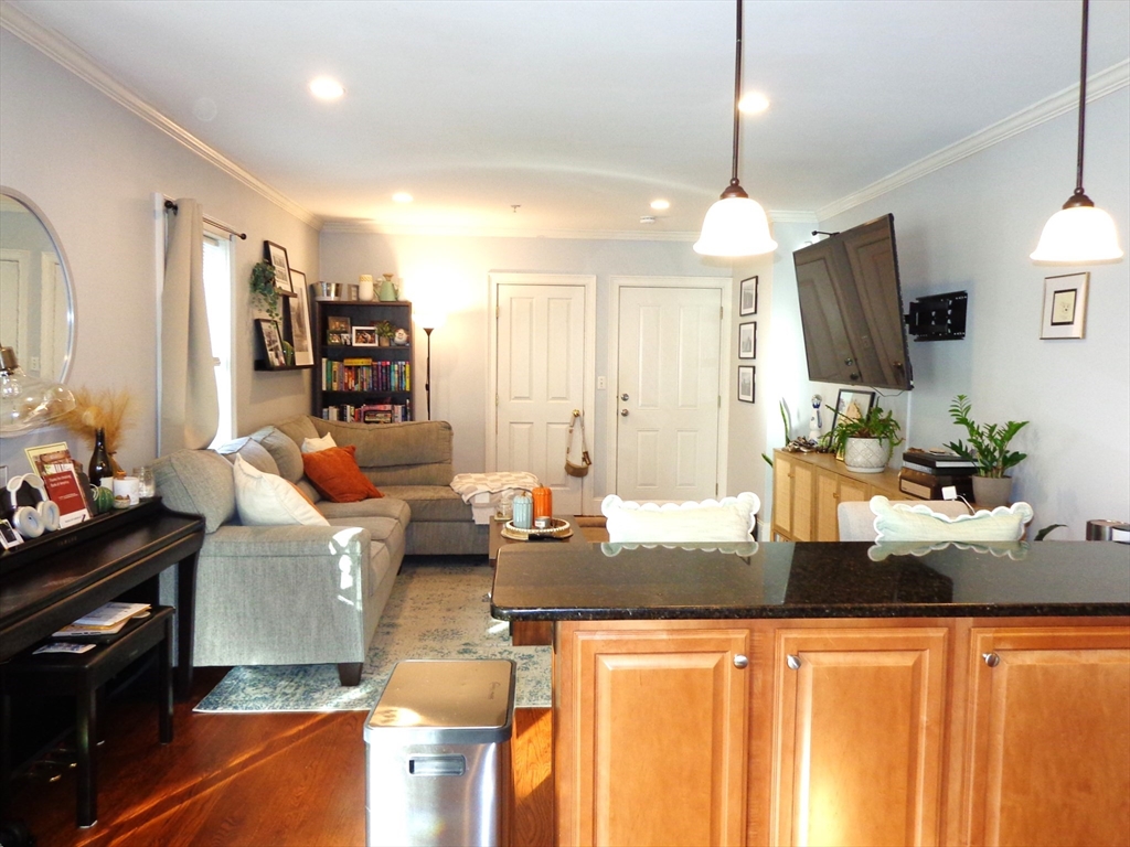 Robbins St. is a fantastic location—close proximity to Brandeis University, West Newton, Moody Street restaurants and shopping, commuter rail, walking/ bike paths, canoeing/kyaking on the Charles River, Mass Pike & routes 20 & 95. This one-bedroom, one-bath unit features an open layout and in-unit laundry. Private entry, lots of closet space/storage in the unit and additional storage is available in a dedicated space beneath the building, accessed from the outside. The unit also includes an assigned off-street parking space and overnight parking on the street available year round. Pet friendly! The home presents itself in great condition, ready to welcome you home. The heart of this residence is undoubtedly the kitchen, a space designed for both culinary creativity and sophisticated entertaining. A kitchen bar offers a casual dining spot or a place to gather with friends, complemented by a kitchen peninsula that enhances both workspace and social interaction.