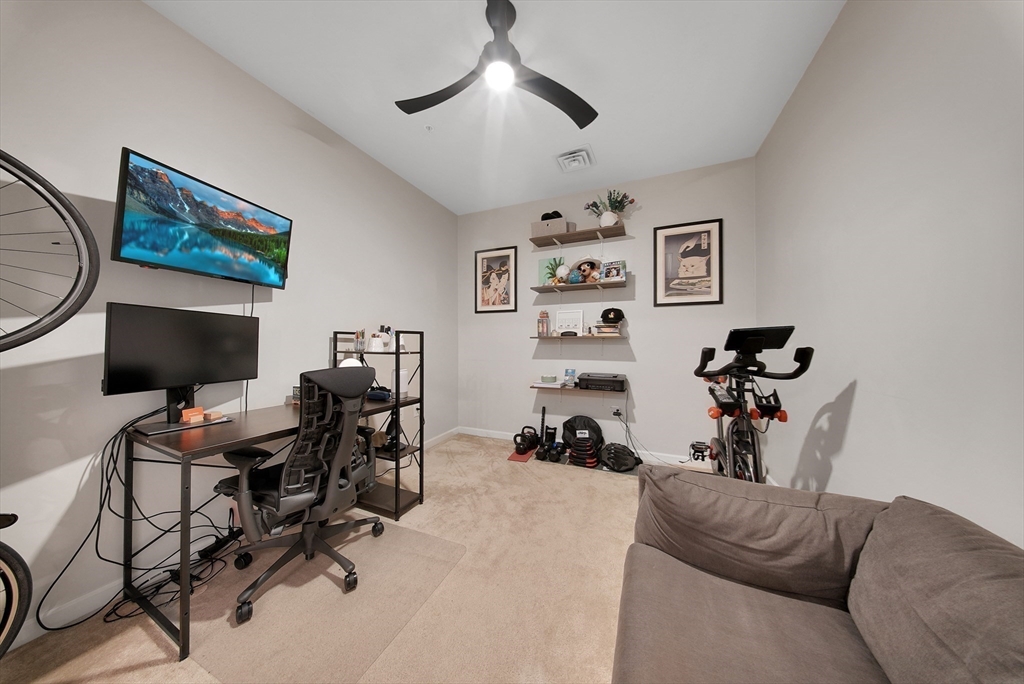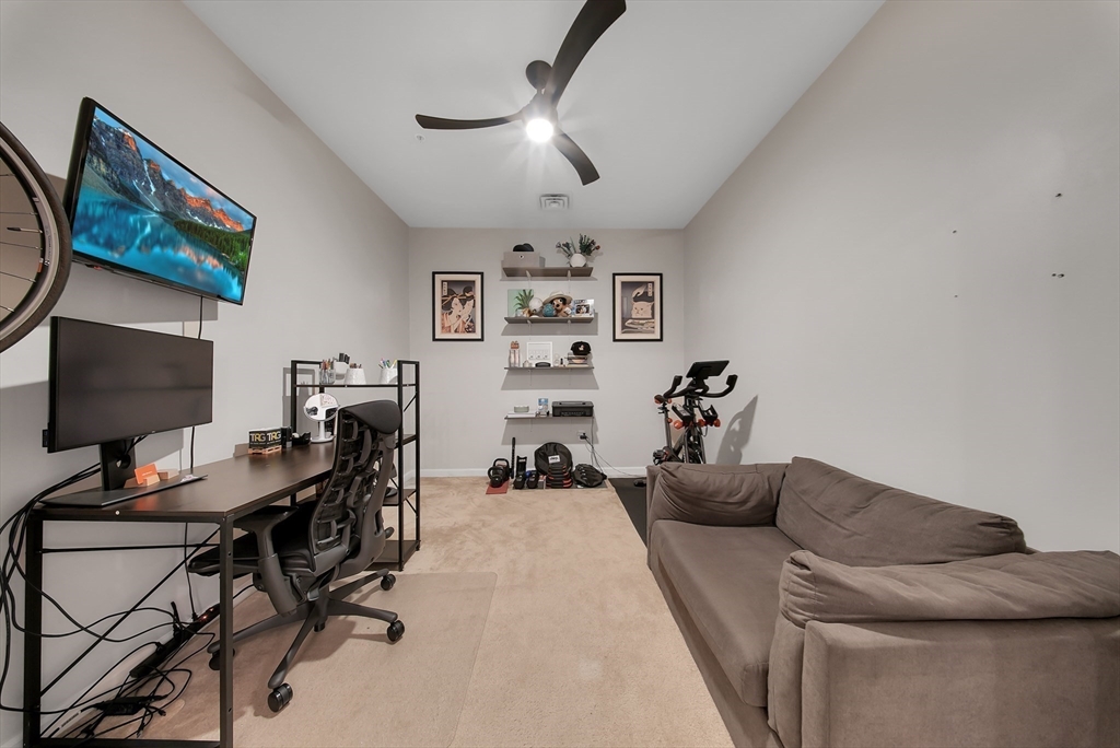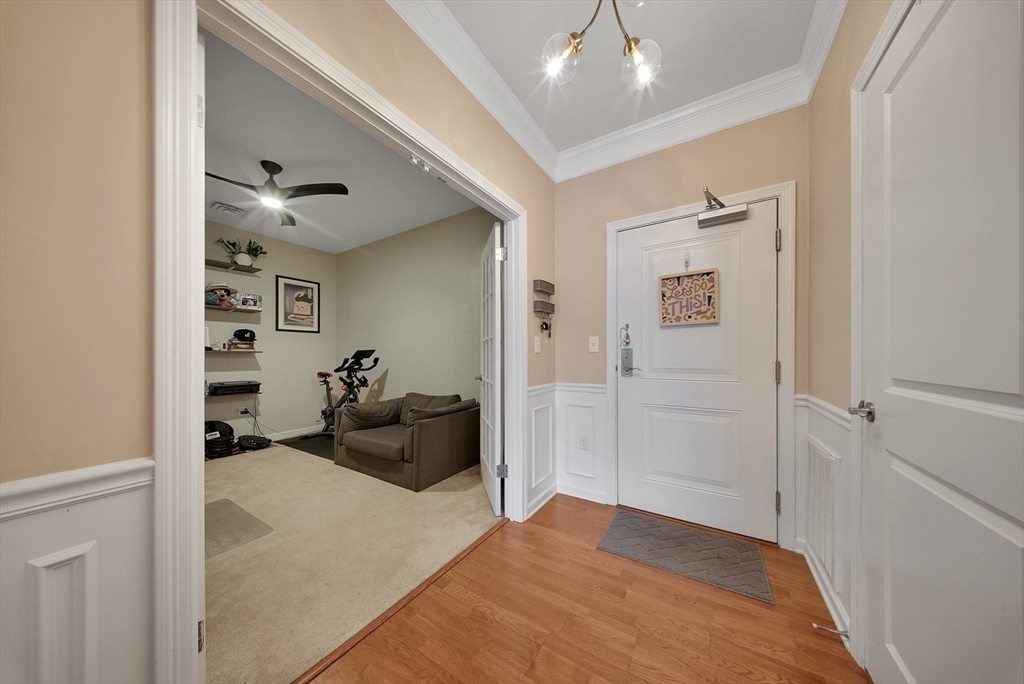 Welcome to Woodstone Crossing at Union Point — a modern community just minutes from Derby Street, South Shore Hospital, Whole Foods, Starbucks, and much more! This bright first-floor condo offers easy single level living with a private patio and a versatile bonus room for a home office, den, or guest space. The stylish kitchen features stainless steel appliances, a large island, and quarts counter tops — ideal for cooking and entertaining. The open-concept living area is filled with natural light and highlighted by high ceilings, recessed lighting. Additionally, the spacious bedroom includes a walk-in closet for plenty of storage and flexibility. Enjoy the convenience of gas forced air, central A/C, in-unit laundry, and parking included. With close highway access and the nearby MBTA commuter rail, getting to Boston is a breeze.