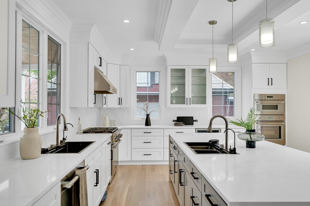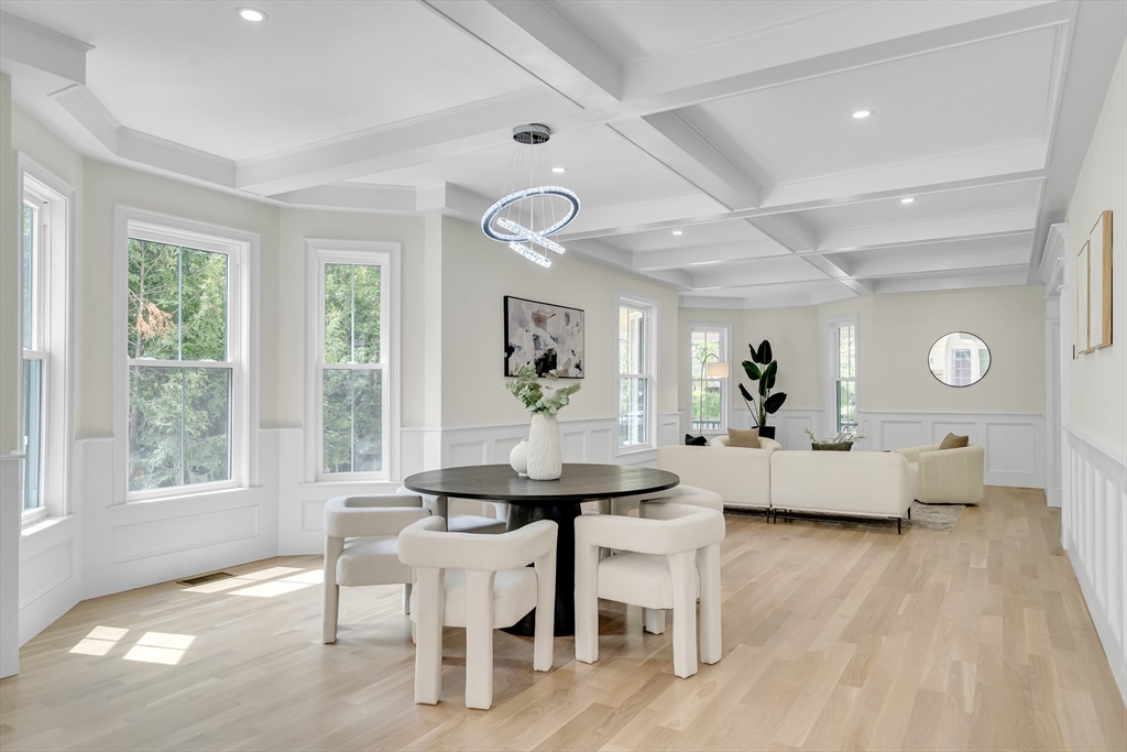 This stunning fully renovated grand Victorian is offered for lease and features a modern design, sun-filled open concept layout, high ceilings, and beautifully preserved architectural details throughout. The main level includes a designer kitchen with high-end appliances and custom cabinetry, a dining area, a spacious living room with fireplace, plus a home office. The second and third floors offer 5 bedrooms, 4 full bathrooms and 2 half bathrooms, a playroom, and a den. Situated on a corner lot with a circular driveway in front and a separate back driveway leading to the yard. Convenient Newton Corner location near top schools, parks, shops, public transit, and major highways. Available for a 12-month lease term.