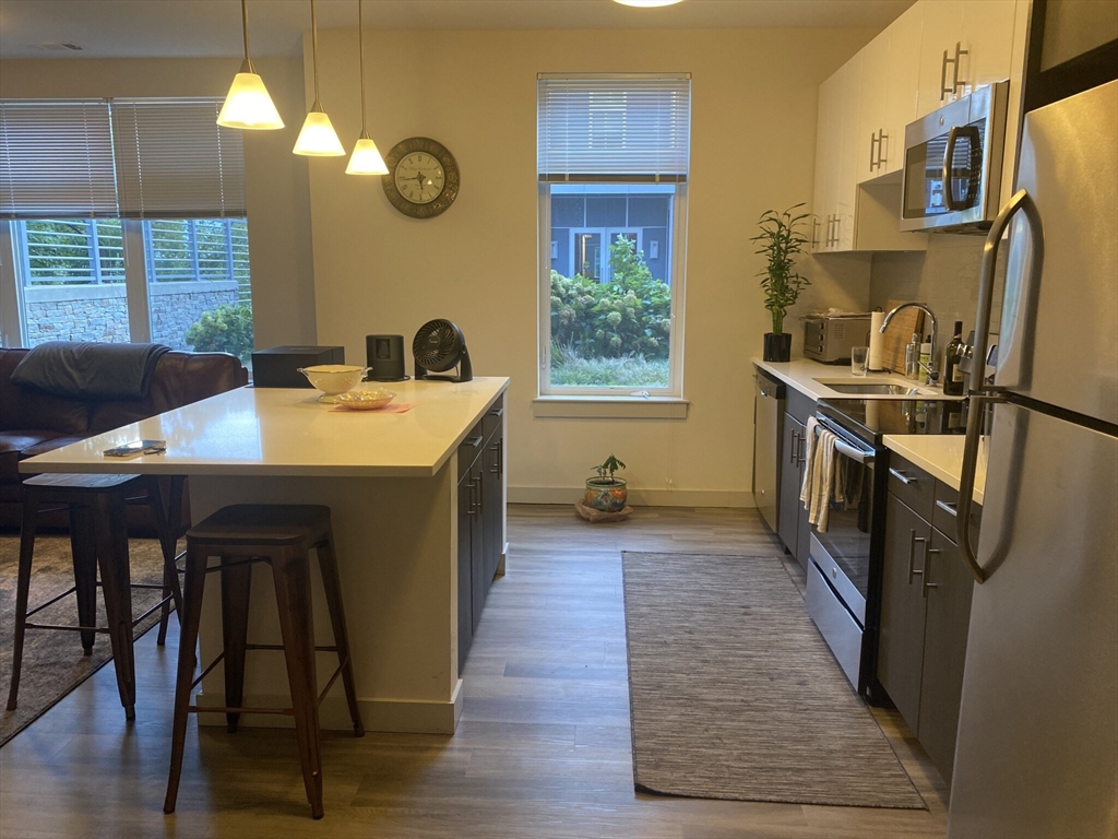 Discover modern living in the heart of Brighton's Oak square. This spacious 1 bedroom condo includes a chef's kitchen, in unit laundry, central heat + AC, a private storage locker and one garage parking spot included. Pets negotiableThe building elevates your lifestyle with premium amenities such as a fitness center, billiards room, media room, bike storage, and a beautifully landscaped courtyard with grills. Video available upon request.