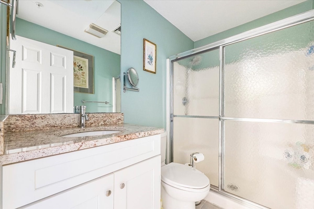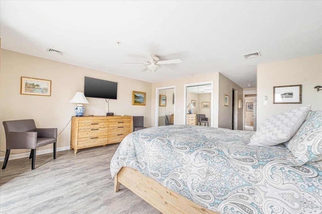 If you are looking for one level living with FANTASTIC ocean views from the living room & primary bedroom, you've just found it! This condominium offers an attractive unit in great condition. Imagine relaxing in the living room, where a fireplace creates a warm and inviting atmosphere. The kitchen is a culinary dream, featuring shaker cabinets, granite countertops, a backsplash, a wine cooler, a large kitchen island, and a desk area; it is truly designed for both functionality and beauty. The primary bath provides a spa-like experience, complete with tiled walk in shower and double vanity. The open floor plan enhances the sense of space and light, making it easy to move and enjoy the condominium's 1530 square feet of living area. This unit is handicap accessible!Outside,the deck provides an amazing view of White Horse Beach and the surrounding community! Additional features include a community pool, two bedrooms, two full bathrooms, and one garage space. Great closet space throughout!