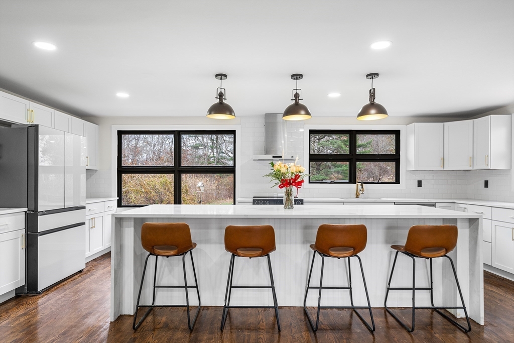 Welcome to 195 Barney Ave—this beautifully updated 3-bedroom, 2-bath ranch home offers modern comfort in a peaceful Rehoboth setting. Featuring a stunning new eat-in kitchen with quartz countertops, Samsung stainless steel appliances, a stylish hood vent, and a dining area ideal for family meals and entertaining. The spacious living room features a classic brick fireplace, perfect for cozy evenings. The primary suite offers a peaceful retreat with a brand-new en-suite bath designed for comfort and convenience. Refinished hardwood floors flow throughout the home, adding warmth and character. Newer Roof installed. A new septic system to be completed before closing. The private backyard provides an ideal space for relaxing or enjoying the outdoors. Move right in and enjoy all the updates—this home combines modern finishes with timeless charm!