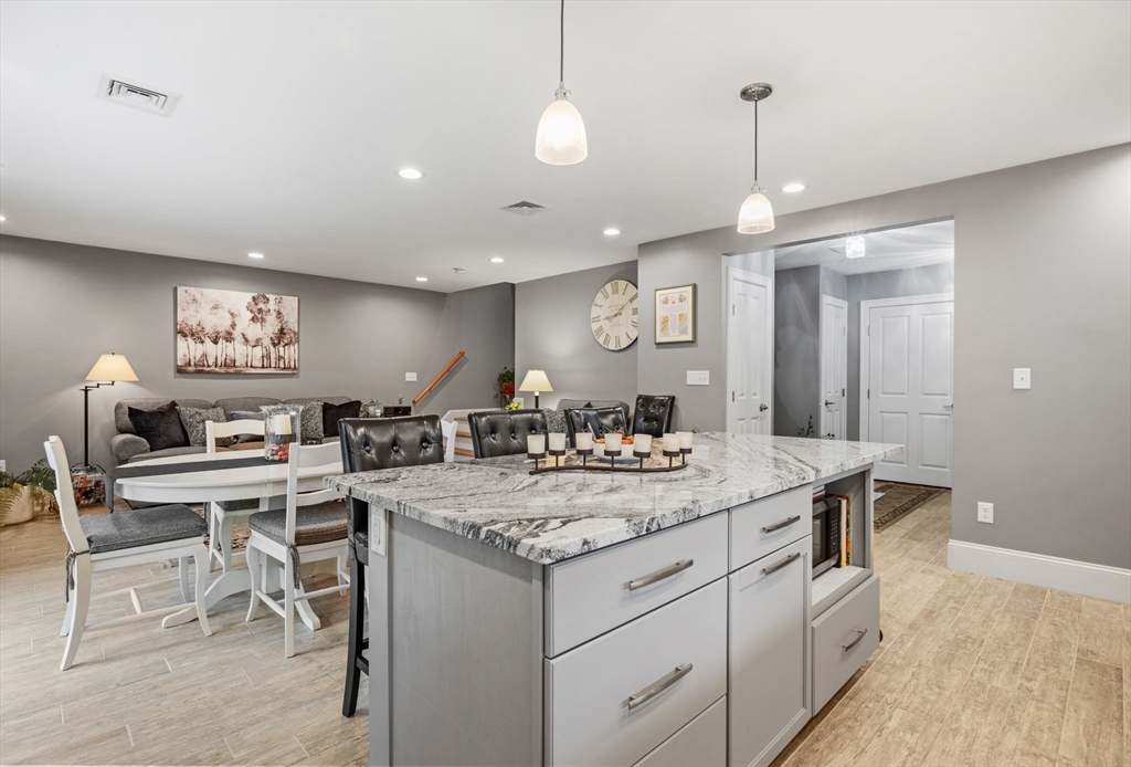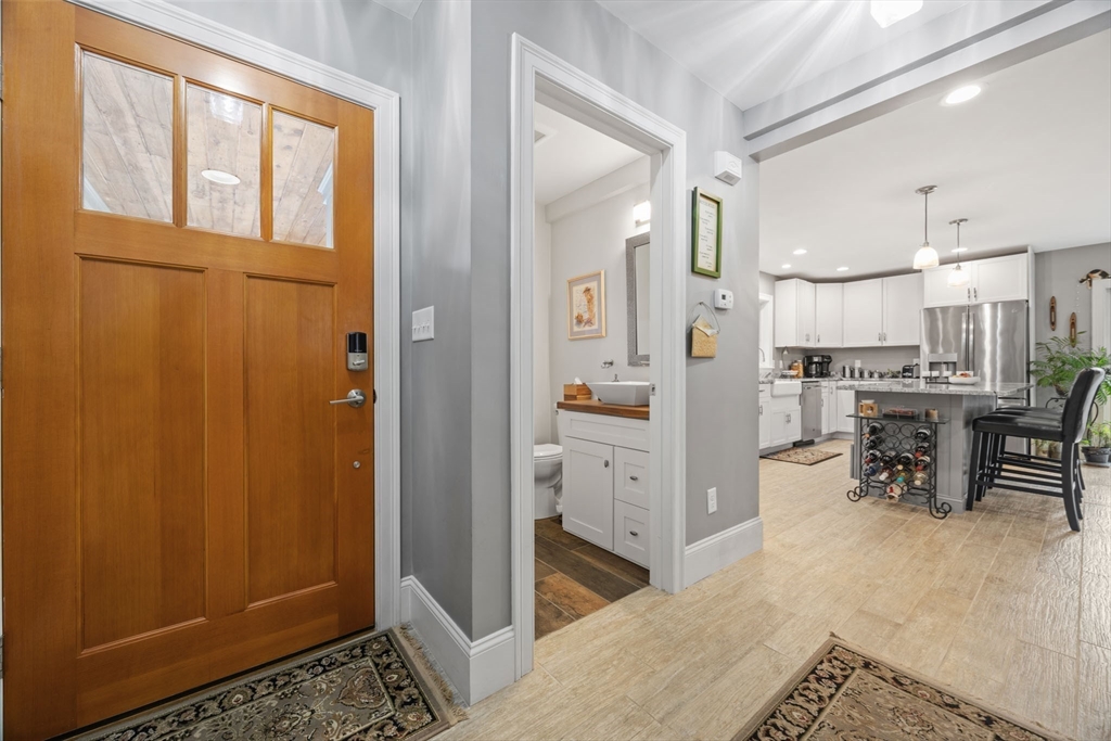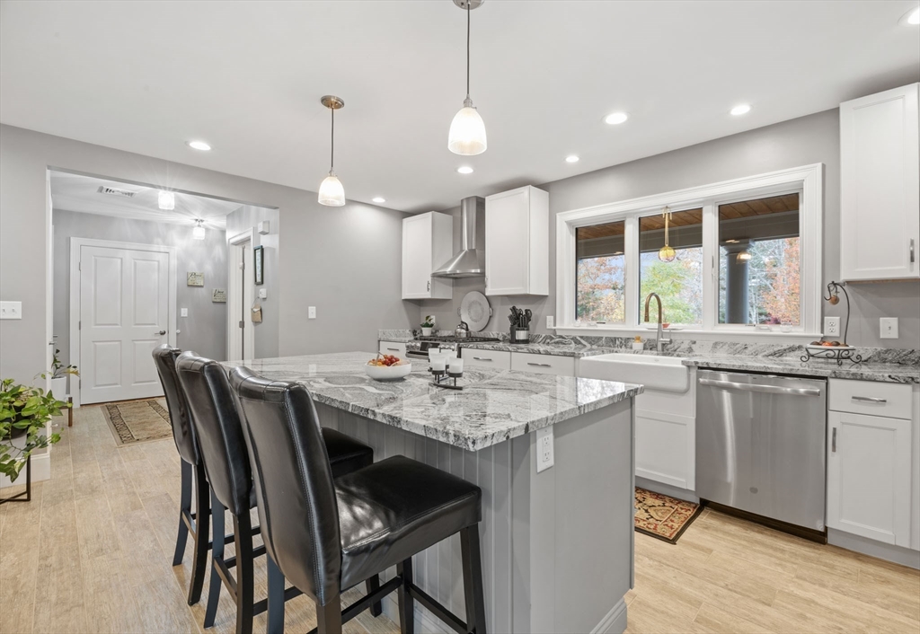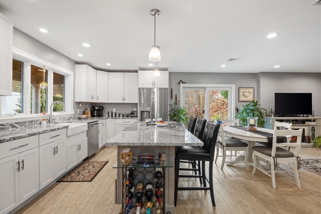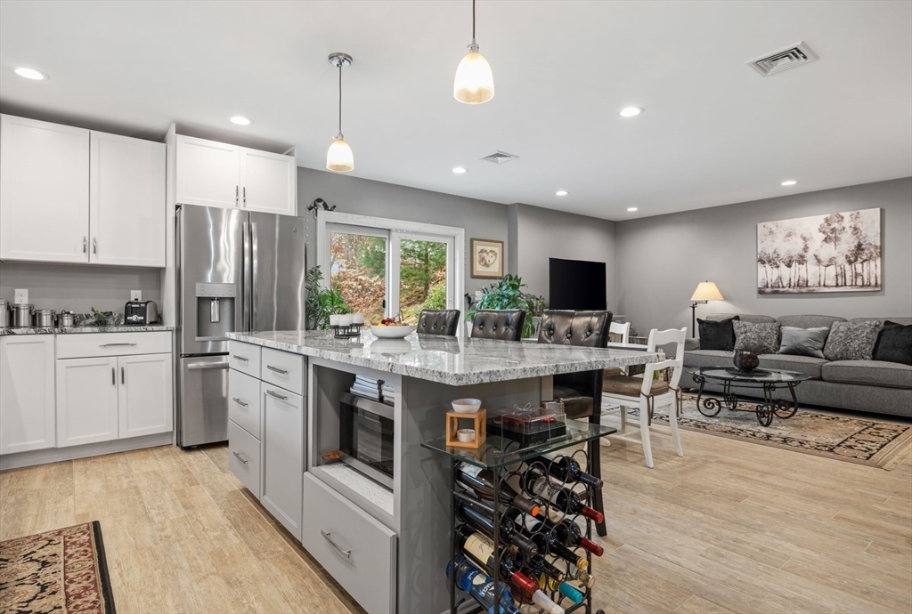 This unique contemporary single family cape nestled in a small development of 10 distinctive homes, centrally located near downtown Plymouth and waterfront provides easy access to shopping and Route 3. Built in 2016, this home offers an extended farmers porch for relaxing and patio for outdoor entertaining, three bedrooms for rest, rejuvenation or home office showcase recessed lights and ceiling fans. The heart of this home lies in its open concept living area with comfortable radiant heat, provides a canvas for both vibrant gatherings and tranquil relaxation. The kitchen boasts stainless steel appliances, farmhouse sink, solid granite countertops, expansive island to make entertaining a breeze. The convenience of one full bathroom and one half bathroom ensures morning routines and evening wind-downs are seamless and stress-free. The heated single-car garage offers shelter for a vehicle and storage. Area manual irrigation system. All Interior and Exterior furnishings are negotiable.