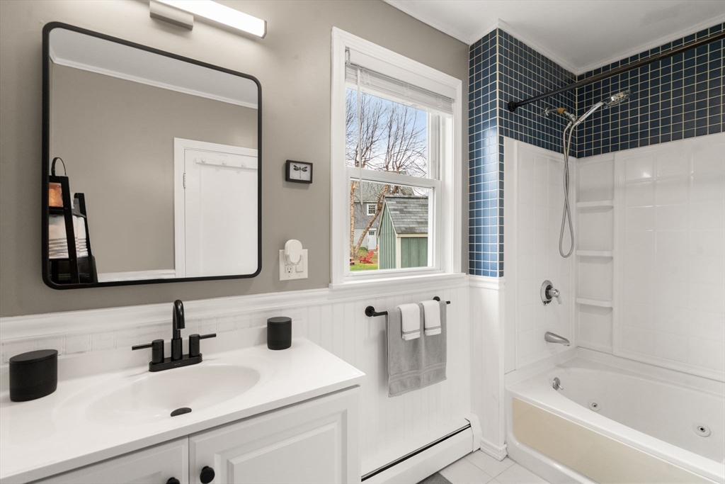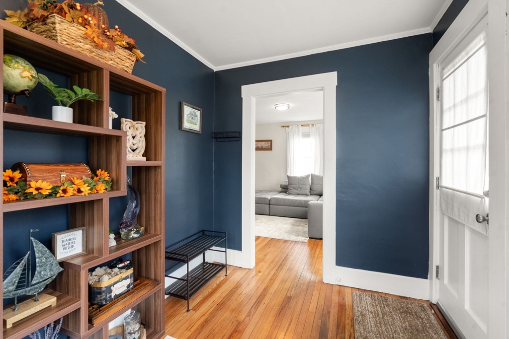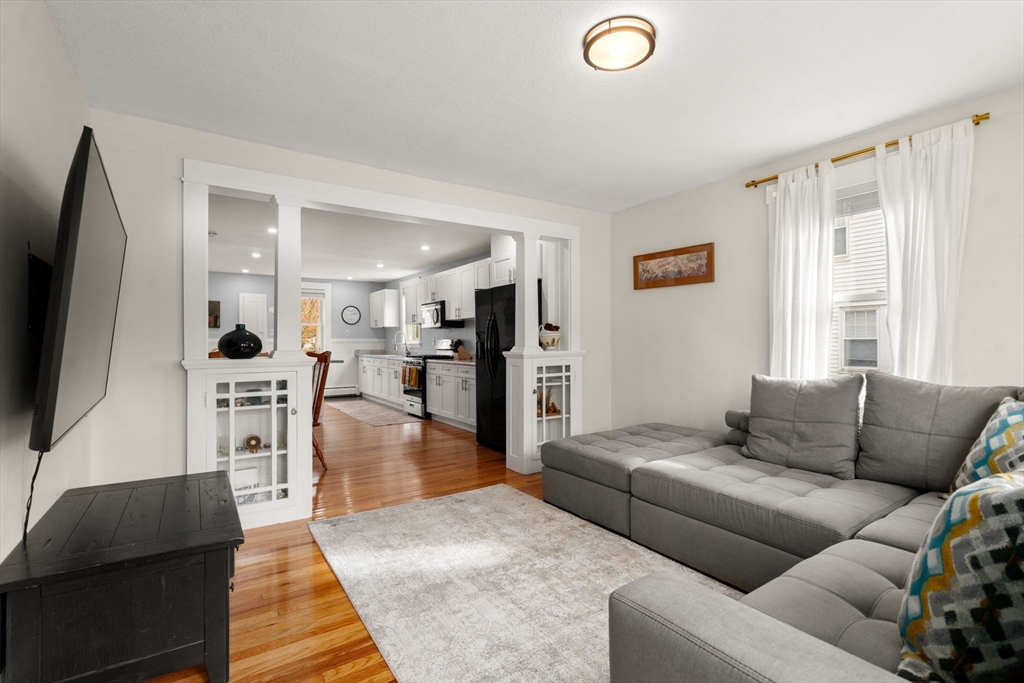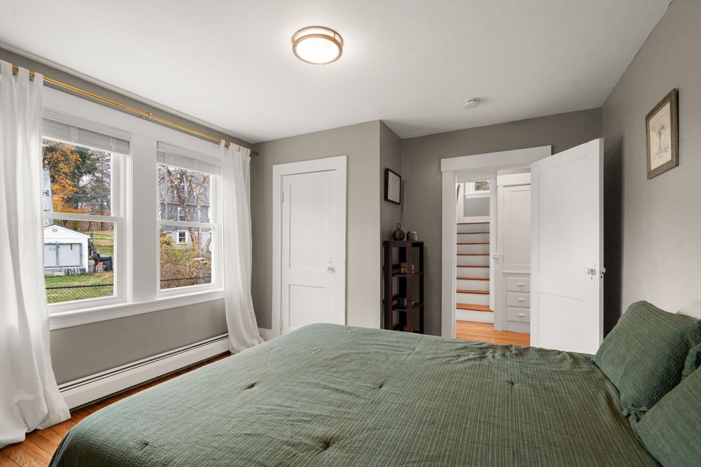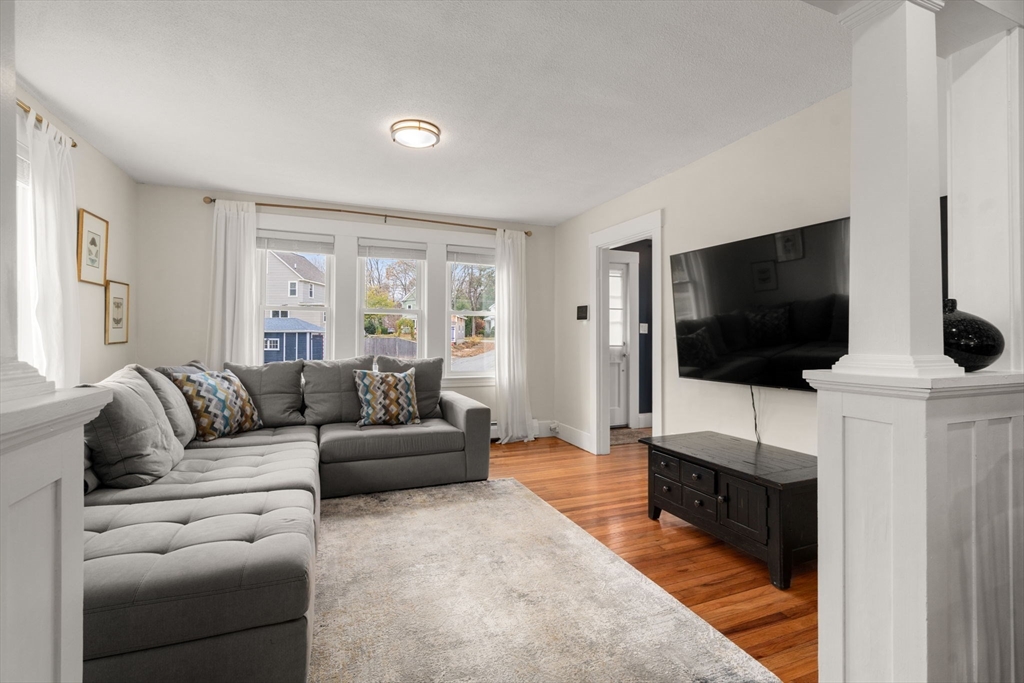 This charming, turnkey Cape is as inviting as it is practical—set on a peaceful street just seconds from downtown. With newer siding, windows, and a lovely patio, the curb appeal is undeniable. Inside, the flexible floor plan offers the option of a first-floor bedroom and full bath, ideal for guests or single-level living. A welcoming front room serves beautifully as a home office or mudroom, opening to a light-filled living room with handsome built-ins, columns, and generous natural light. The dining area flows seamlessly into an expansive, nearly new kitchen featuring stainless steel appliances, abundant cabinetry, ample counter space, and a large pantry. Upstairs, two comfortable bedrooms and a second full bath complete the picture.Out back, enjoy the new patio, level yard, and handy storage shed. Additional updates include a newer furnace, lighting, blinds, chimney work, sump pump. Truly move-in ready with timeless Cape charm in a prime location