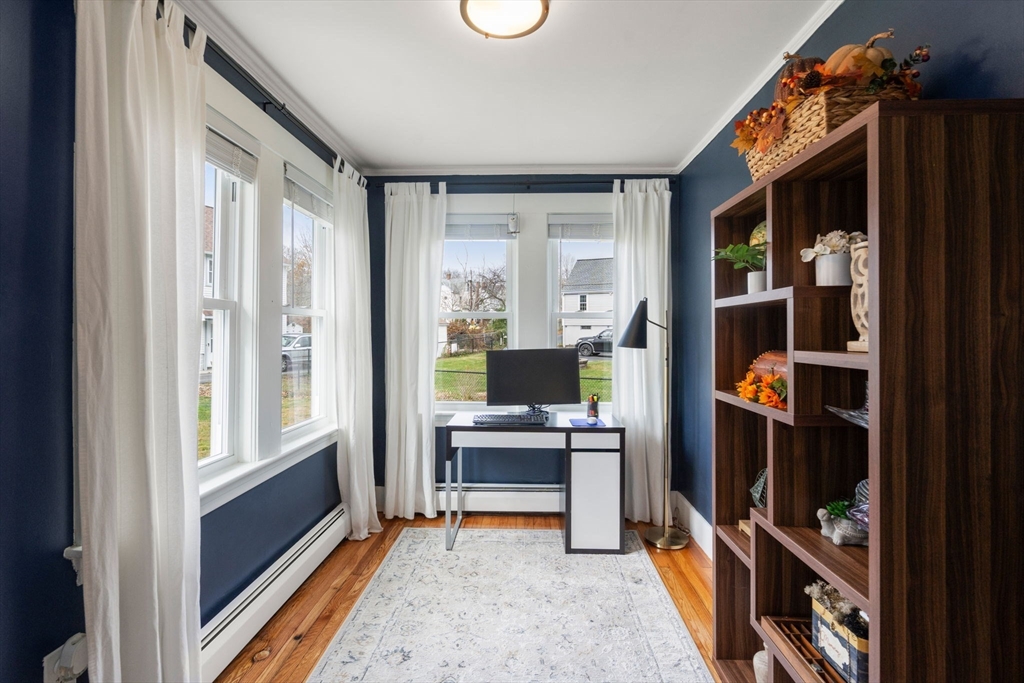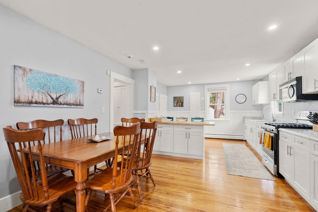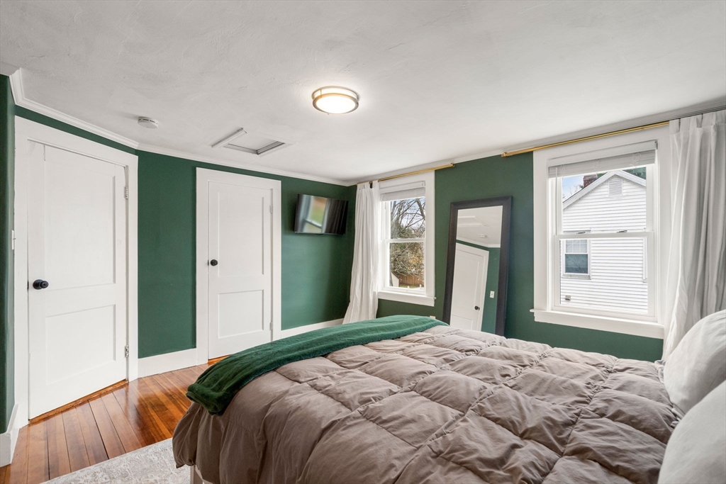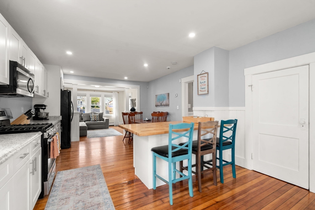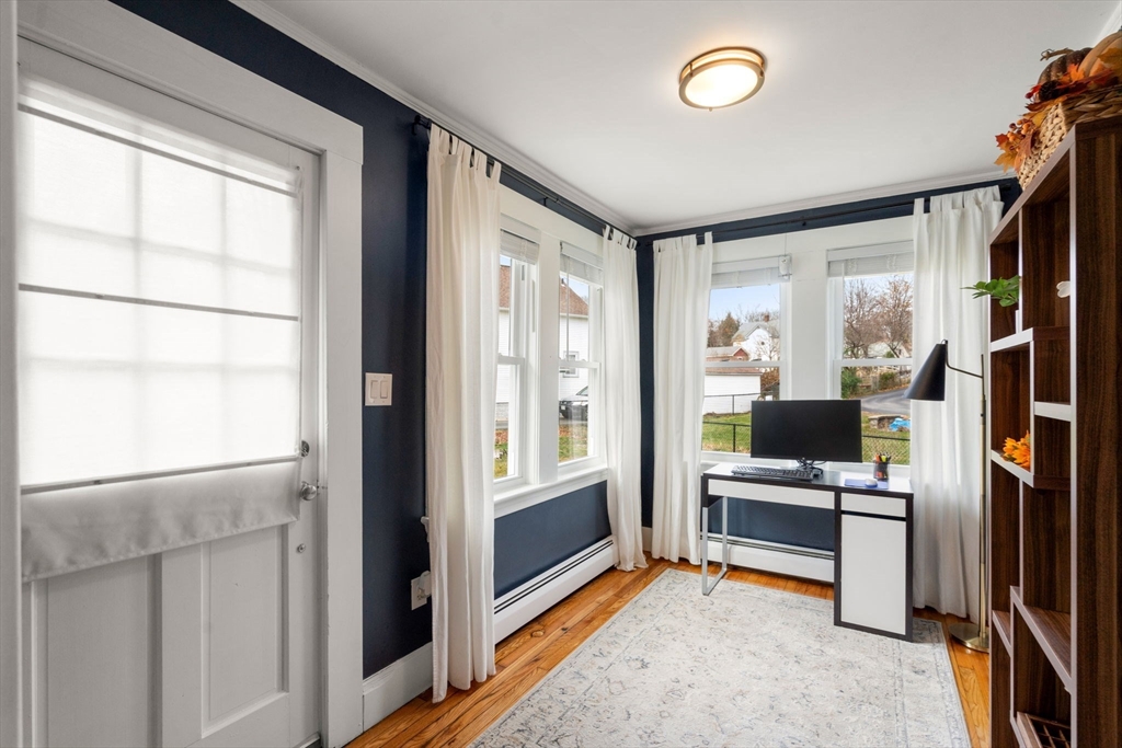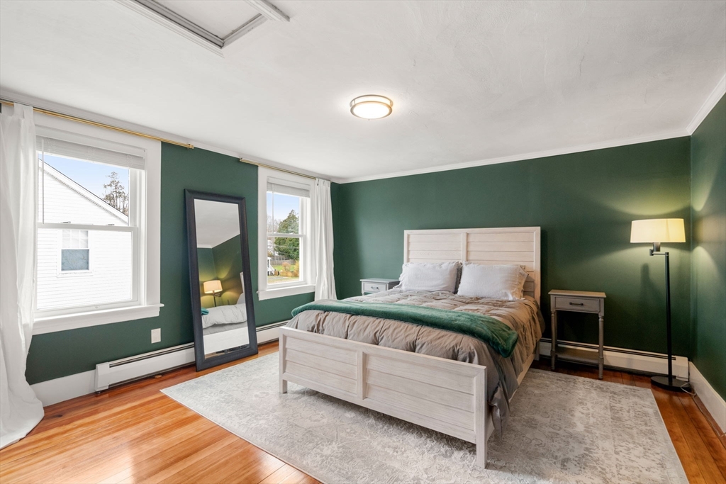 This charming, turnkey Cape is as inviting as it is practical—set on a peaceful street just seconds from downtown. With newer siding, windows, and a lovely patio, the curb appeal is undeniable. Inside, the flexible floor plan offers the option of a first-floor bedroom and full bath, ideal for guests or single-level living. A welcoming front room serves beautifully as a home office or mudroom, opening to a light-filled living room with handsome built-ins, columns, and generous natural light. The dining area flows seamlessly into an expansive, nearly new kitchen featuring stainless steel appliances, abundant cabinetry, ample counter space, and a large pantry. Upstairs, two comfortable bedrooms and a second full bath complete the picture.Out back, enjoy the new patio, level yard, and handy storage shed. Additional updates include a newer furnace, lighting, blinds, chimney work, sump pump. Truly move-in ready with timeless Cape charm in a prime location