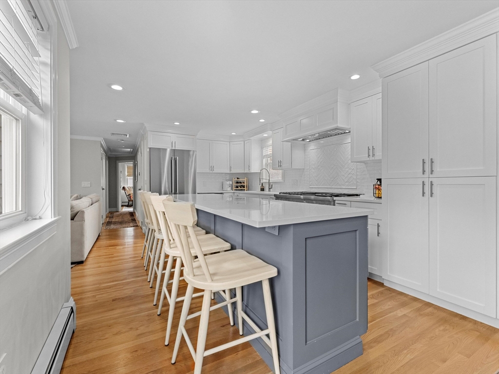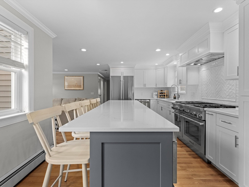 Fabulous opportunity in Ashland, MA! This home offers luxury finishes far beyond its price. Renovated gourmet kitchen features a chef’s dream: 48" Thermador dual-fuel range (gas cooktop/electric double ovens), paneled hood, quartz counters, and a massive 9ft+ island with seating & storage. Enjoy year-round comfort with updated HVAC (heating & cooling). The practical mudroom has built-ins and sliders leading to a private deck and an above-ground pool with solar cover and fenced backyard—perfect for entertaining! Main level boasts hardwood flooring in all three bedrooms, plus an upgraded full bathroom and stylish new interior doors. Lower level living shines with LVT flooring in the family room and office, a second full bath with shower, and a spacious tile laundry room. Lower level mini split and Navien Combi boiler installed 2023. The oversized garage provides significant storage and opportunity. Low maintenance and move-in ready! Excellent commuter location. Showings begin today!