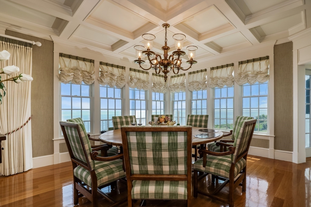 This unrivaled oceanfront estate on prestigious Ministers Point in North Chatham offers grand-scale living with breathtaking Atlantic Ocean vistas. The cedar shingle and stone exterior blend seamlessly with elegant interiors featuring striking architectural details, custom finishes, and exceptional craftsmanship. Sunlight fills the 11-room residence, showcasing panoramic views of Chatham's coastline and North and South Beach. The entry opens to a spectacular living and dining room with soaring coffered ceilings, an imported fireplace, and walls of windows framing the sea. A grand family room with a fireplace offers space for entertaining, while a wood-paneled ensuite study provides a cozy retreat. The chef’s kitchen leads to a private second-floor ensuite bedroom. Upstairs, a magnificent primary suite, a third ensuite bedroom, and a book-lined sitting area await. The lower level offers two ocean-facing ensuite bedrooms. Enchanting grounds complete this estate.