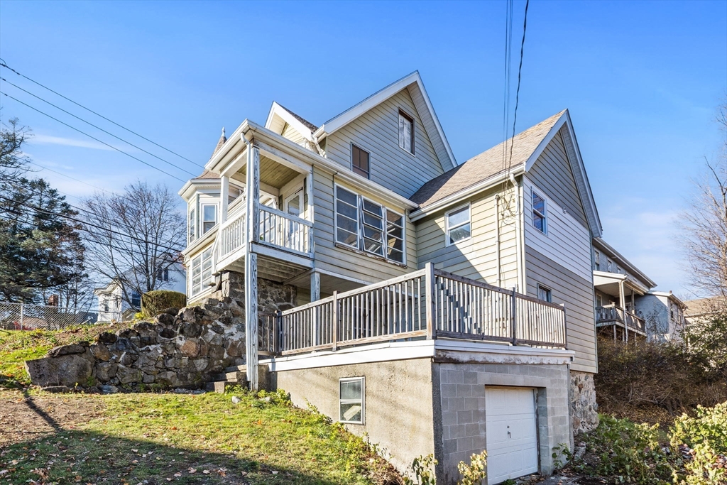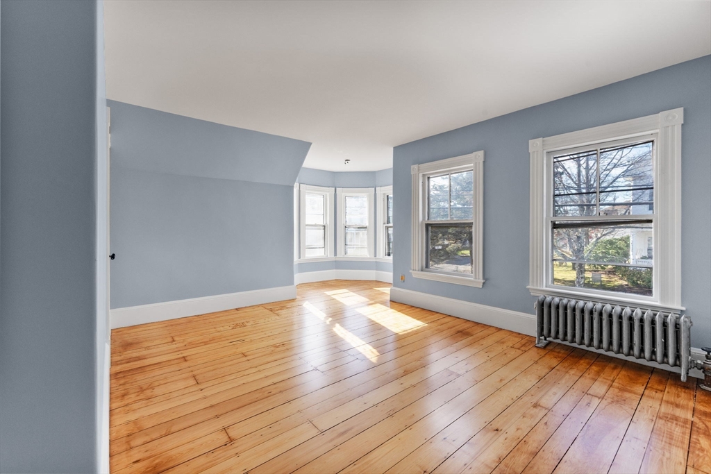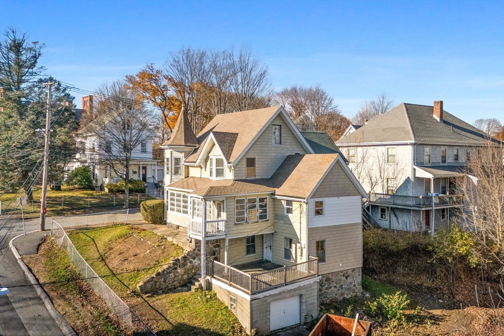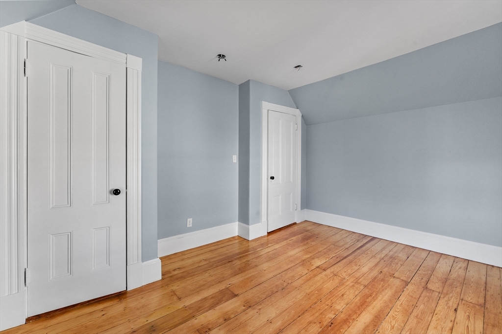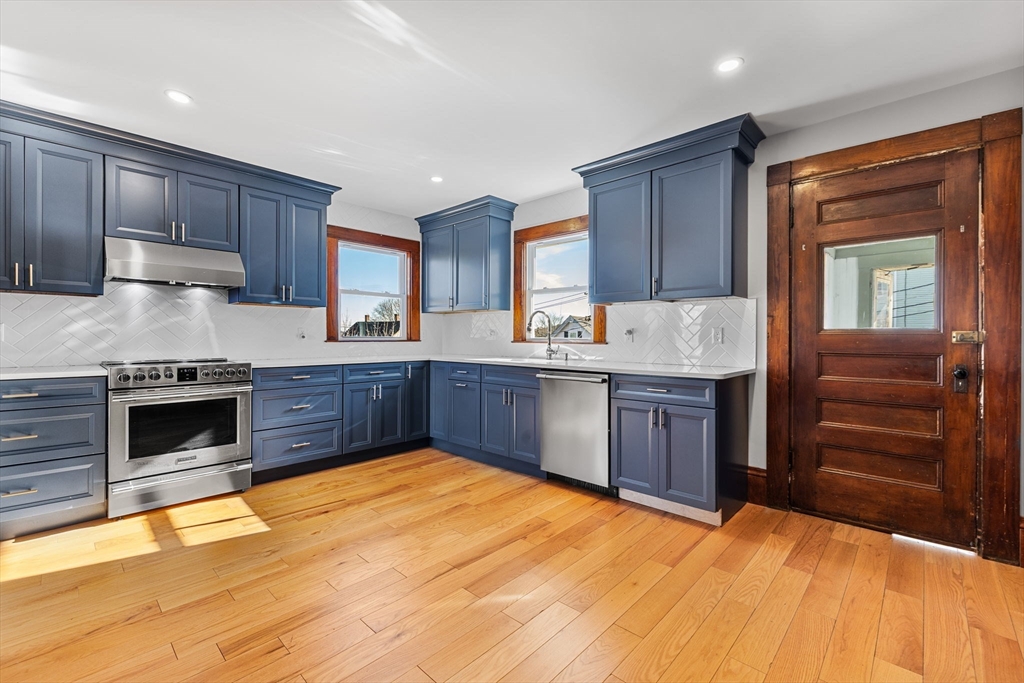 This beautifully updated Victorian is located just two blocks from downtown Wakefield and is a short distance to Lake Quannapowitt. Featuring 9-foot ceilings, paneled solid wood doors, and hardwood floors throughout. Renovated in 2022, the stylish kitchen features quartz countertops, herringbone backsplash, recessed lighting, and Frigidaire Professional Series stainless-steel appliances. An adjoining den/playroom/office/guest room provides valuable flexibility. The open living room/dining room space offers a large area for entertaining and showcases a stained-glass chandelier and pocket doors for elevated elegance. Upstairs features three freshly painted, generously sized bedrooms plus a smaller room ideal for an office, walk-in closet, nursery, or primary bath conversion. The full basement with its own entrance and driveway may be converted to a one-bedroom apartment. Situated on a desirable corner lot with an easy commute to downtown Boston via public transportation.