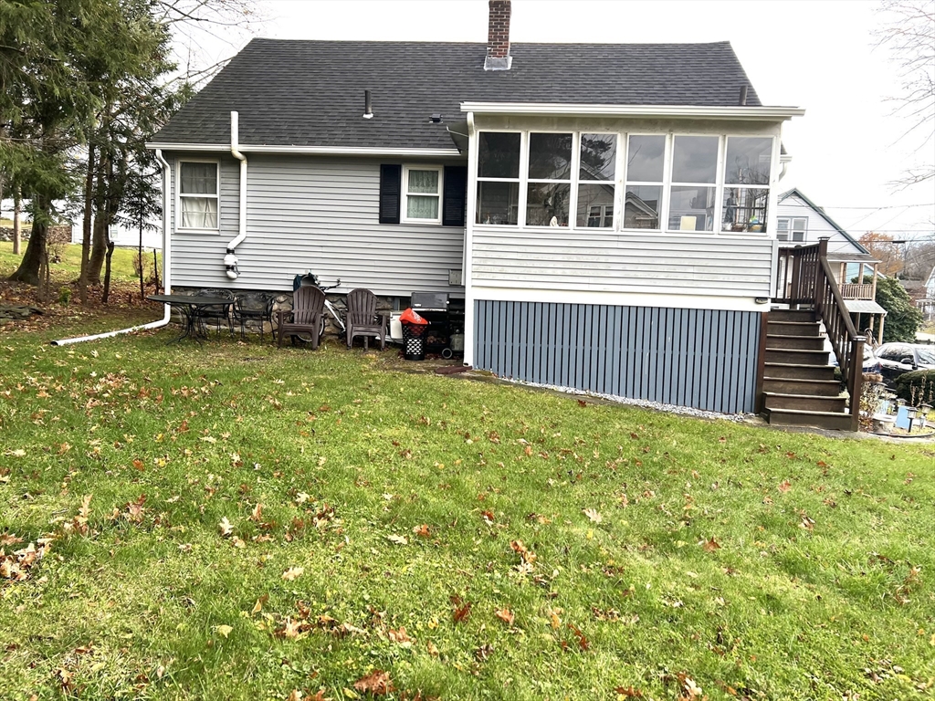 Great opportunity to own this charming 4-bedroom Cape offering 1,583 sq. ft. of living space. The first-floor features two bedrooms, an updated full bath, an oversized eat-in kitchen, and a cozy living room. The second floor includes two additional bedrooms, perfect for flexible living arrangements. Recent updates provide peace of mind, including a new roof (2023), Buderus heating system (2023), chimney liner (2023), hot water heater (2023), new gutters and downspouts (2024), and a beautifully remodeled bathroom (2024). The basement offers a fantastic workshop space with cabinetry and direct walk-out access to the garage. Situated on a corner lot, the home features a sweet, manageable yard and a delightful, enclosed porch just off the kitchen—perfect for morning coffee or relaxing afternoons. This is a super cute home, and any buyer would be lucky to call it their own.
