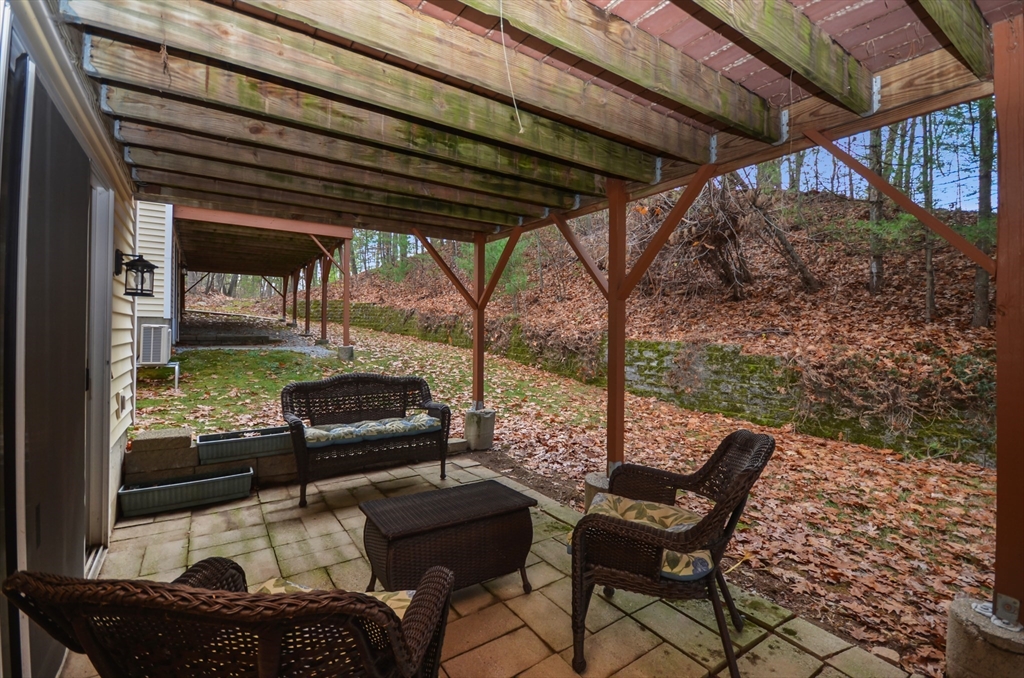 Experience townhouse living in a desirable commuter locale, thoughtfully positioned toward the back of the community w/ a serene wooded backdrop. Sun-filled, this unit welcomes you w/ soaring ceilings,stylish finishes & an inviting open layout designed for modern comfort.The living room showcases cathedral ceilings, updated flooring, & a beautiful fireplace that anchors the space w/ warmth. The adjoining kitchen & dining area offer an effortless flow for everyday living & entertaining, while a first-floor half bath w/ laundry adds convenience.Upstairs, the spacious primary bedroom provides both a walk-in closet & direct access to a full bath enhanced w/ on-trend shiplap detailing. A second bedroom offers generous storage & serene wooded views.The standout feature of this home is the WALK-OUT finished lower level, complete w/ full-size windows, slider & FULL bathroom and young mini-split heating & cooling systems -ideal for use as a versatile guest area, home office, 3rd bedroom & more!