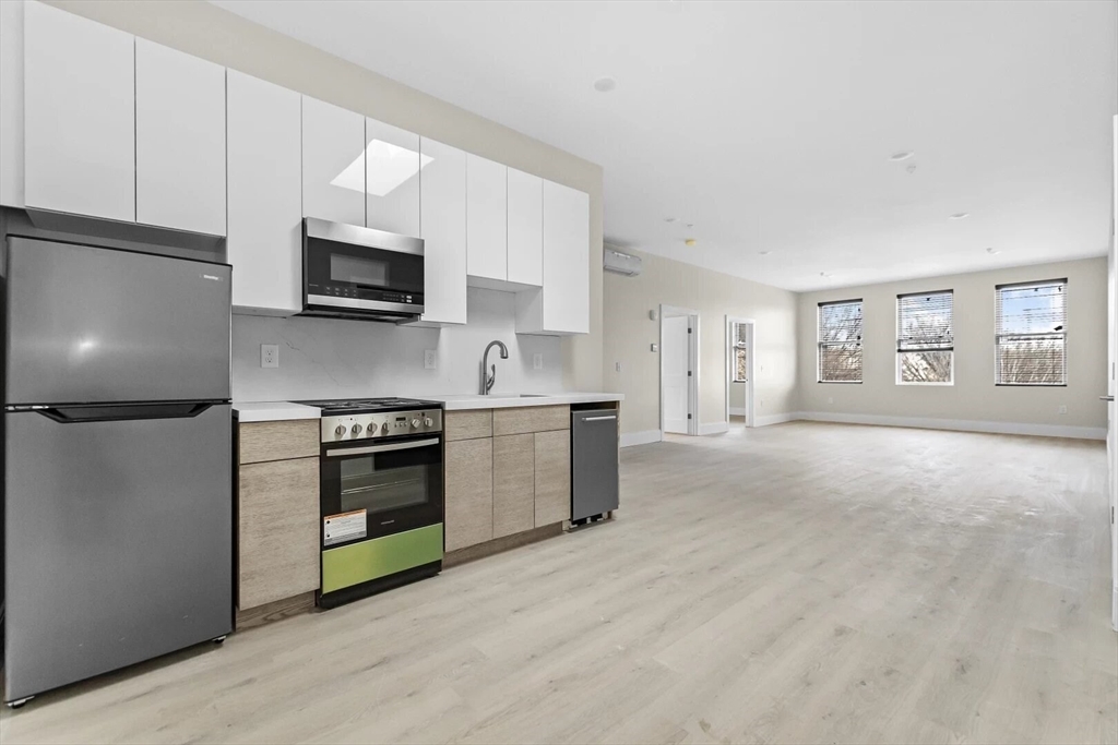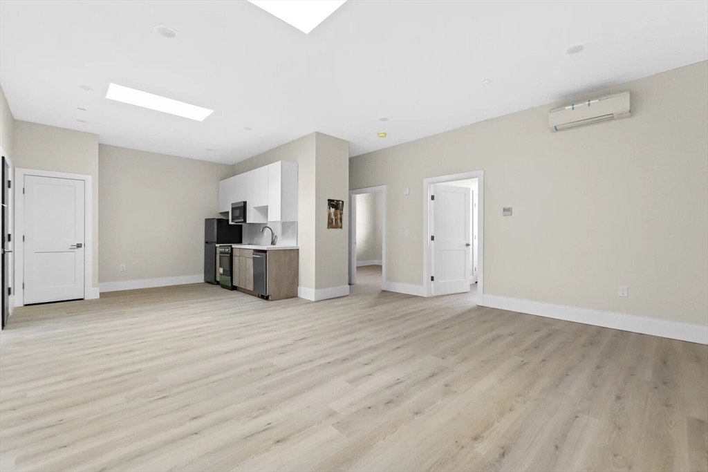 Three bedroom, one bathroom newer construction apartment for rent. Top floor unit with the best natural light, skylights, and open floor plan. All three bedrooms have their own double closets and good sized. Each room has its own heat and air conditioning. Water and parking included.