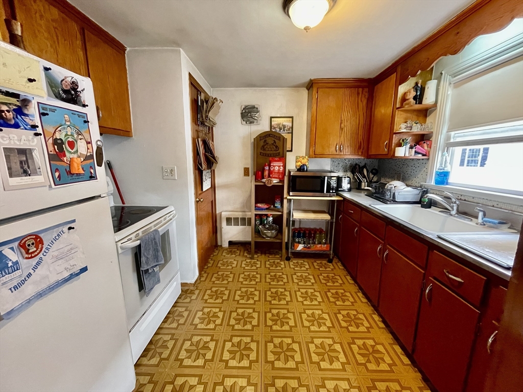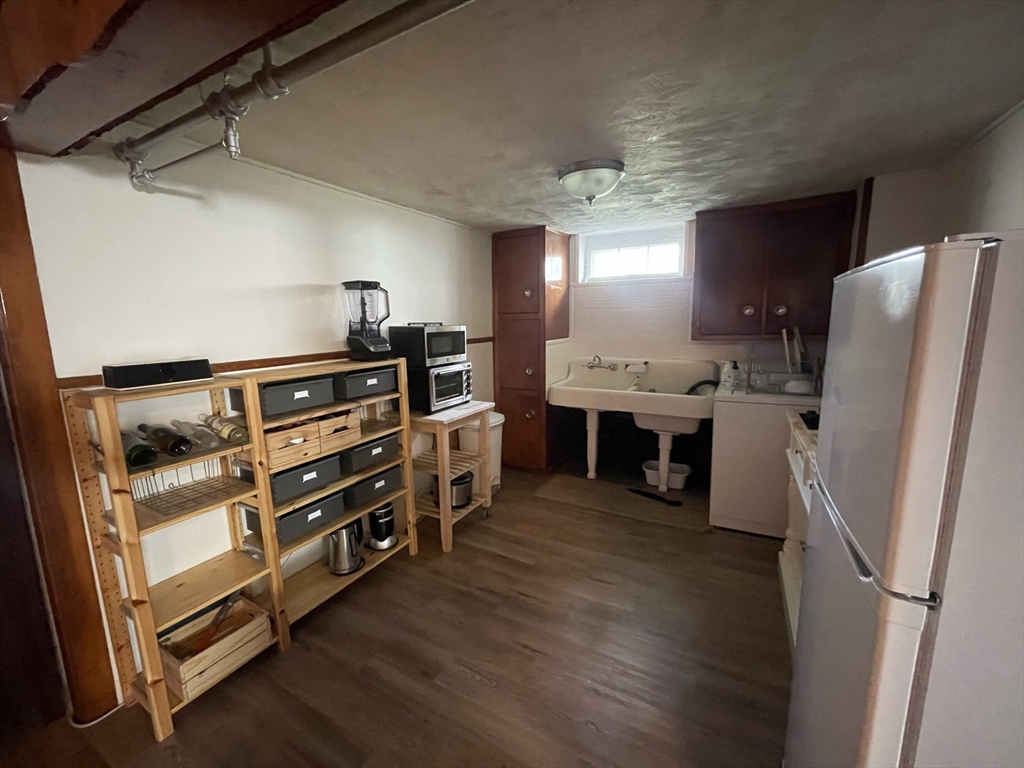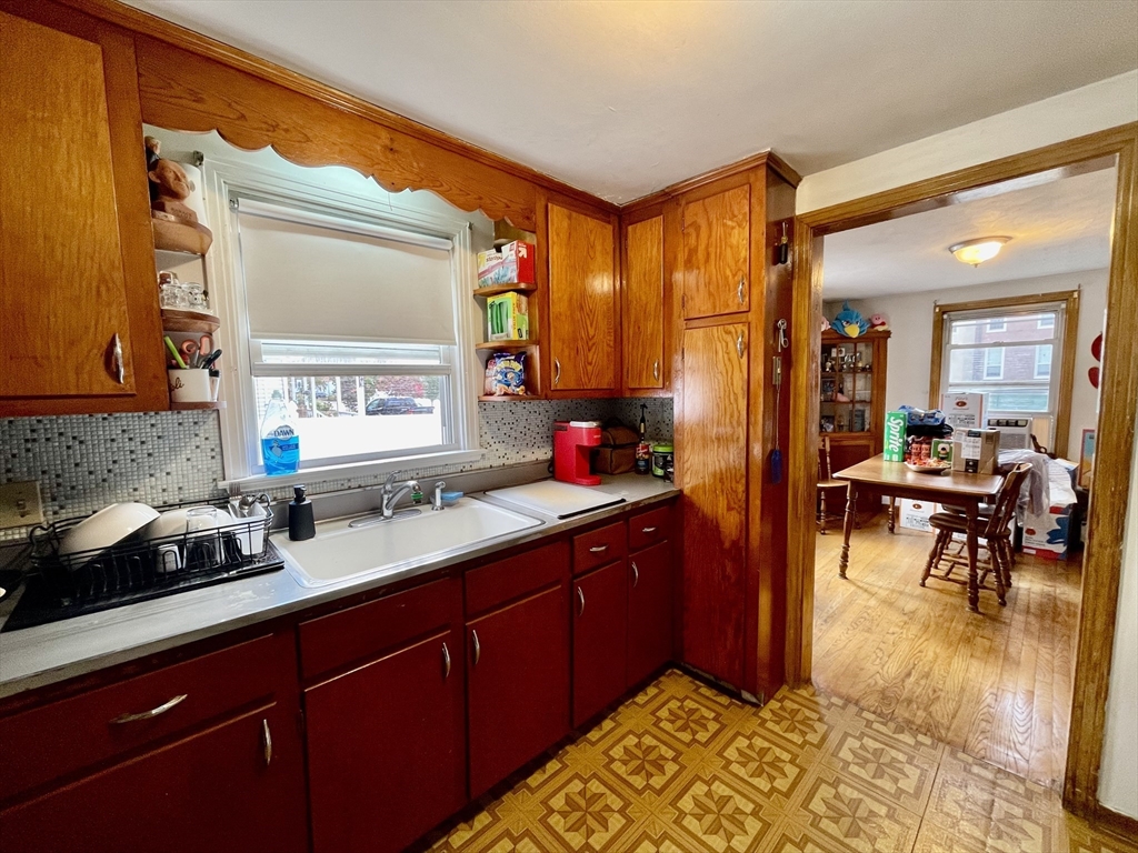 Discover this inviting 3-bedroom, 2-bathroom rental offering just under 1,500 sq. ft. of meticulously maintained living space. The main level features a spacious formal dining and living room with wood floors and abundant natural light. The retro kitchen boasts ample storage in its wooden cabinetry, perfect for any home chef. Enjoy versatile living in the finished basement, ideal for a family room, home office, or bonus space, complete with a full bathroom. Private laundry facilities add convenience. Outside, a large backyard awaits, perfect for lounging and barbecuing. Located on a quiet side street in the desirable Newtonville neighborhood, you’ll be close to public transportation, shopping, restaurants, and the Charles River walking trail. Ample parking is available in the paved driveway, and while tenants don’t have garage access for vehicles, the garage is available for storage, housing the lawnmower and snowblower for tenant use. Available December 1st. NO DOGS ALLOWED.