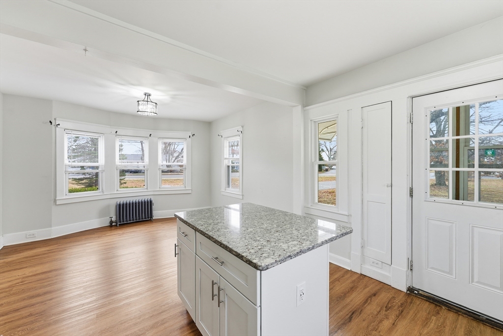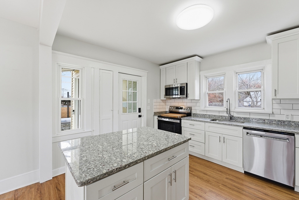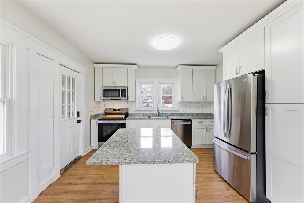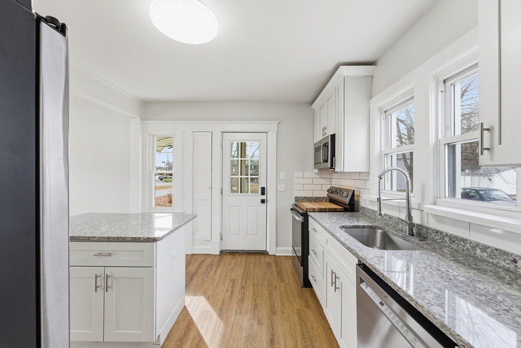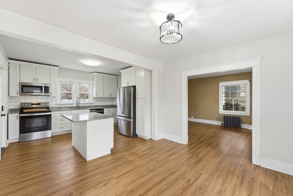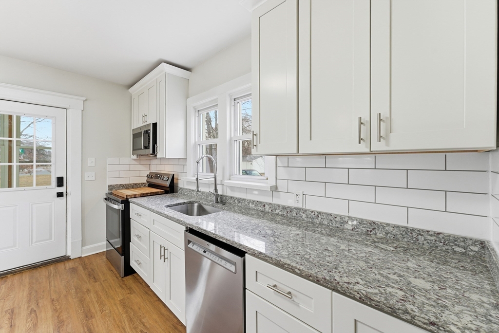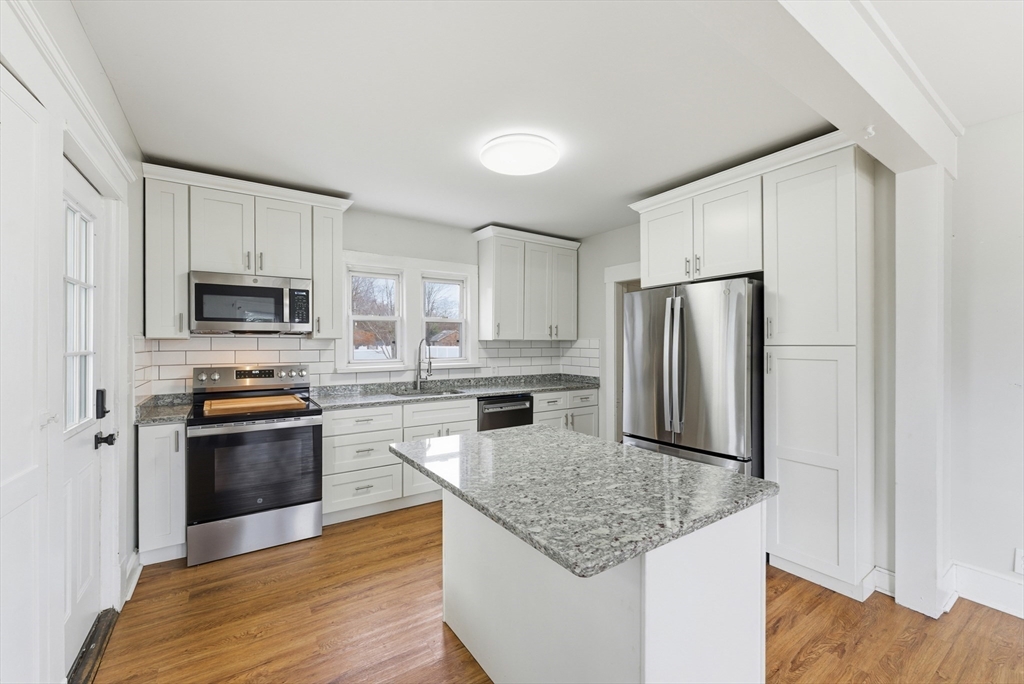 Your Search is Over! Recently renovated with stylish updates is this Charming Colonial found in the heart of Feeding Hills conveniently located to all your needs set on pretty yard. Tastefully remodeled in 2024 w/All appliances (1 year old) to remain, includes washer, dryer & window AC's. Plus future 1/2 bath is ready for your final touches! Trendy white kitchen, granite counters & sleek stainless steel appliances w/kitchen island adds function & storage opens to beautiful dining area leads to a spacious living room you can relax in. The enclosed porch is a bonus space for relaxing or ideal during inclement weather! Modern LVP has been installed throughout the home adds a modern flair. Upstairs you will find 3 comfortable bedrooms with roomy closets and a tastefully renovated full bathroom. Efficient gas heat w/ newer furnace will keep you warm this winter! The one car detached garage has a newly poured concrete floor & added electricity lighting. So Affordable & Waiting For You!