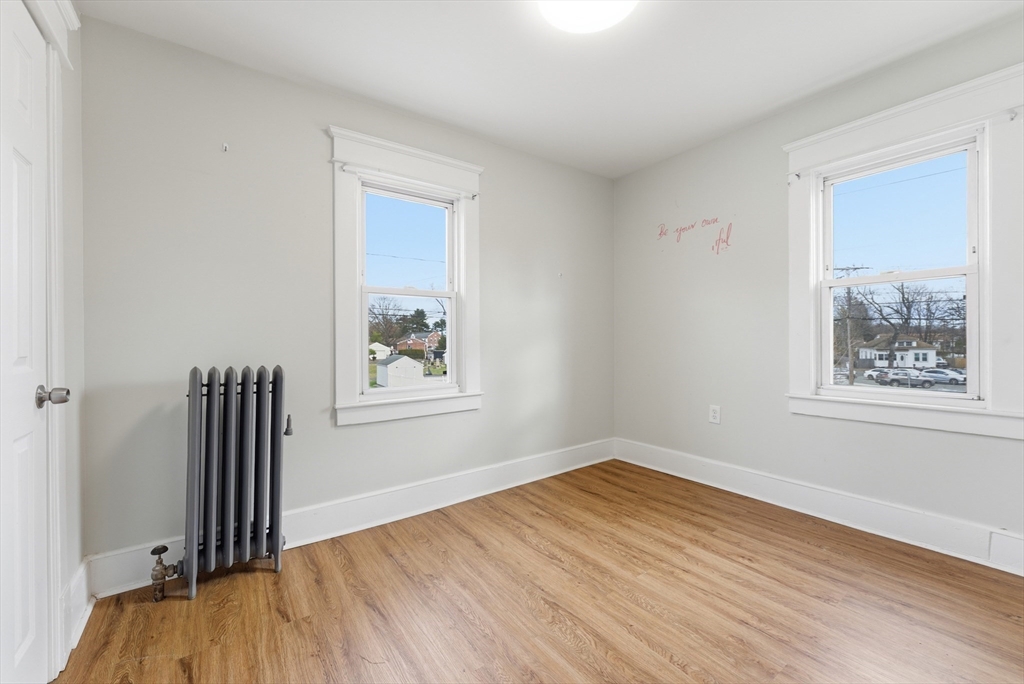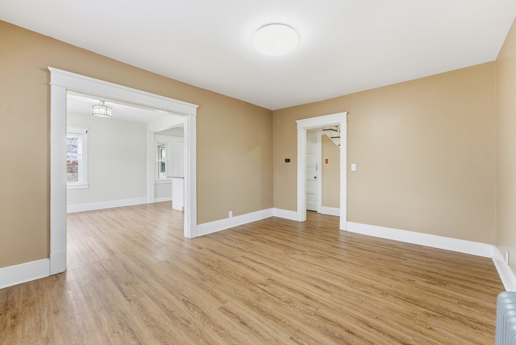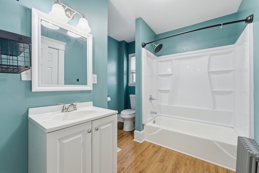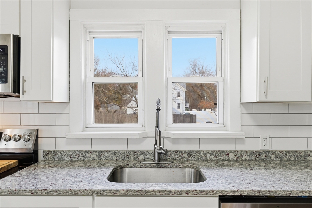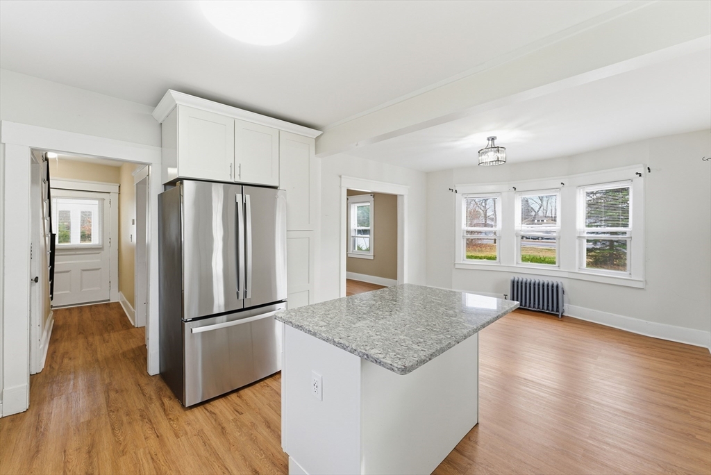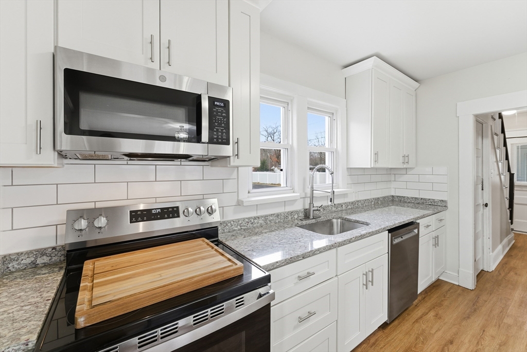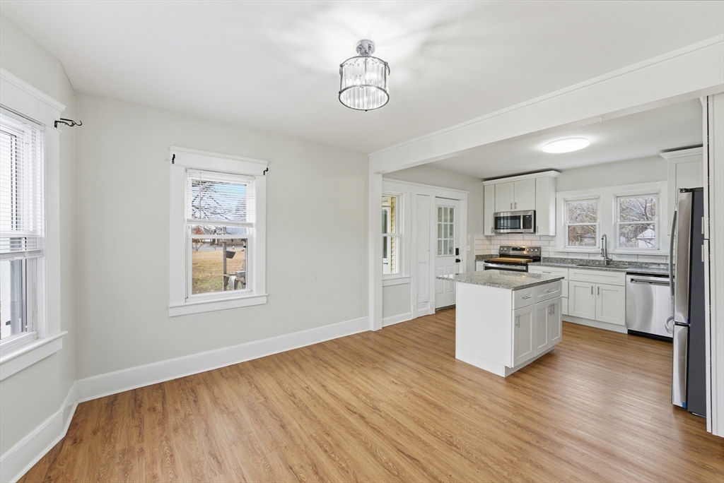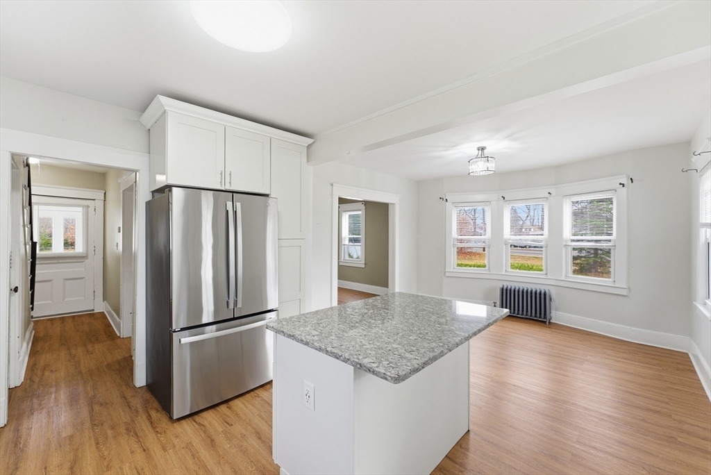 Your Search is Over! Recently renovated with stylish updates is this Charming Colonial found in the heart of Feeding Hills conveniently located to all your needs set on pretty yard. Tastefully remodeled in 2024 w/All appliances (1 year old) to remain, includes washer, dryer & window AC's. Plus future 1/2 bath is ready for your final touches! Trendy white kitchen, granite counters & sleek stainless steel appliances w/kitchen island adds function & storage opens to beautiful dining area leads to a spacious living room you can relax in. The enclosed porch is a bonus space for relaxing or ideal during inclement weather! Modern LVP has been installed throughout the home adds a modern flair. Upstairs you will find 3 comfortable bedrooms with roomy closets and a tastefully renovated full bathroom. Efficient gas heat w/ newer furnace will keep you warm this winter! The one car detached garage has a newly poured concrete floor & added electricity lighting. So Affordable & Waiting For You!