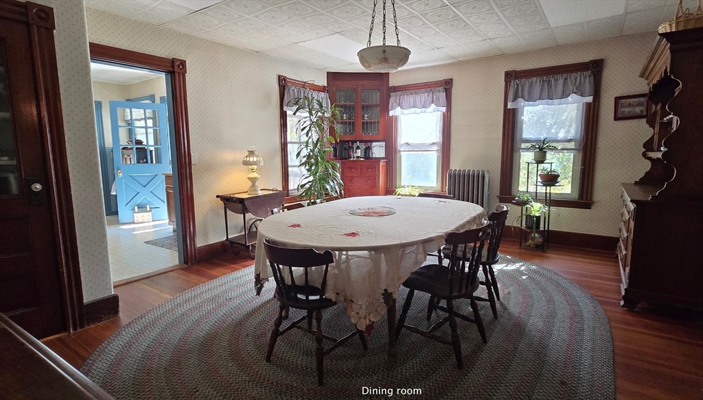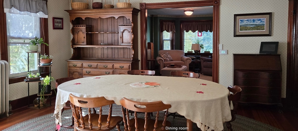 WELL LOVED AND CARED FOR FAMILY HOME NEW TO THE MARKET! This gorgeous colonial holds 100+ years beautiful memories and history. Original woodwork, flooring that features bullet molding throughout. The first floor offers spacious eat in kitchen ,newer stainless appliances with cozy pantry, laundry room and 1/2 bath. Open ,Sun filled Living and Dinning room with hardwood flooring, built ins and Office/Den space. Extra wide original molding staircase, stain glass window leads to second floor. Three bedrooms with plenty of closet storage space with new carpets. Mudroom for extra convenience and storage. Charming, freshly painted front porch. Oversize, 2 car garage with new doors. Located on a quiet side street. Close to schools, shopping and downtown.