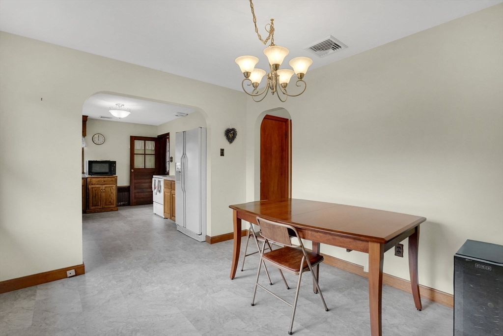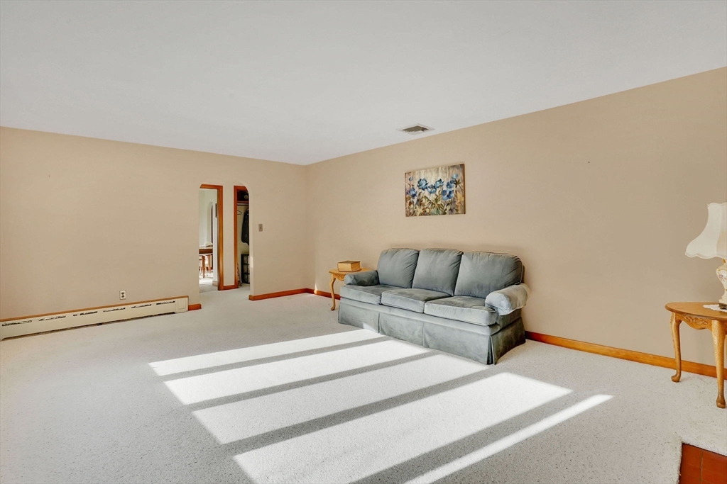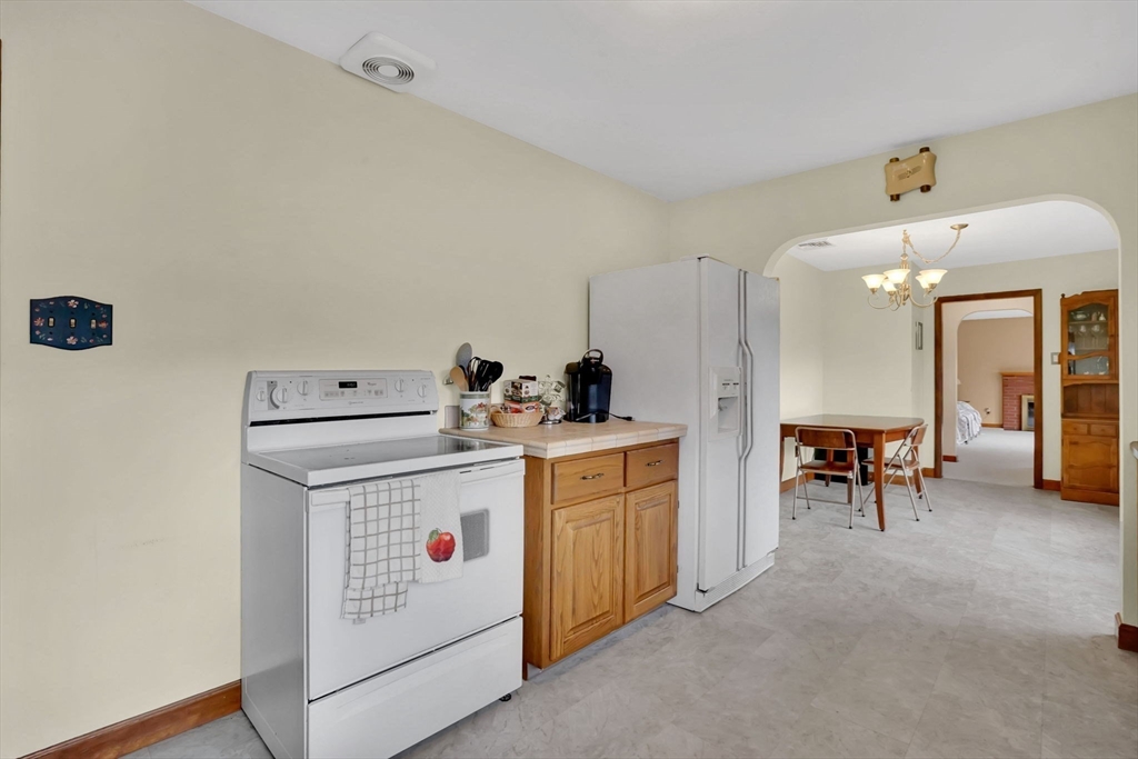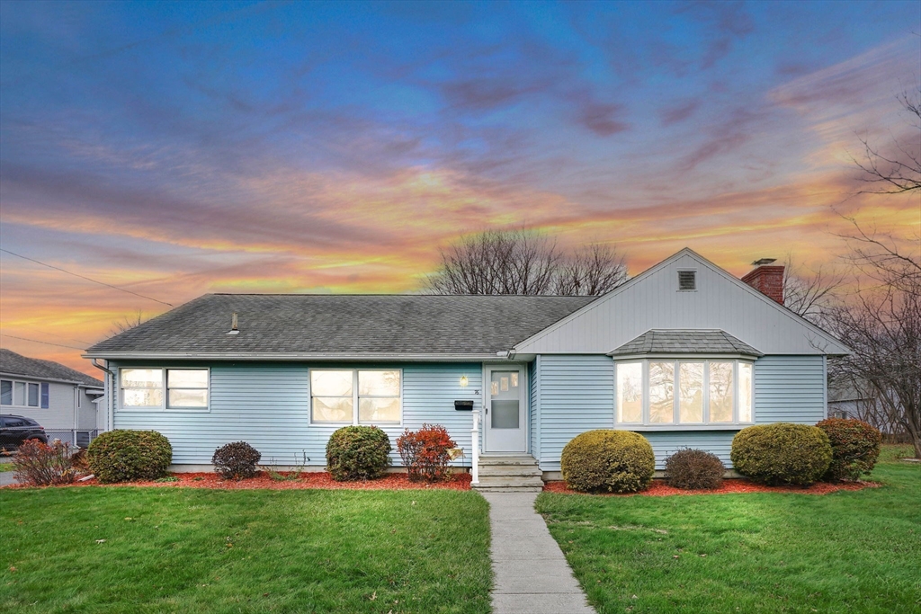 Adorable one-owner ranch-style home filled with natural light, timeless details, with a cozy, welcoming feel. The kitchen has abundant cabinetry, three large windows overlooking the front yard, and a dining area perfect for entertaining. The living room features a brick fireplace and a beautiful bow window. Located on the main level are three well-sized bedrooms w/ custom built-in shelving for added charm. Features include central air, 200-amp electrical, central vacuum, a large second-floor attic for storage or potential living space. A center hall foyer, archways, landscaped exterior, and backyard patio attached to the garage ideal for grilling and hosting complete the home. Conveniently located near everyday amenities, major highways & routes- just a bonus! Seller states: hardwood floors preserved under carpets throughout (Professionally deep cleaned 2025), kitchen and dining room flooring updated (2021) and stainless steel-flue with lifetime guarantee (2021).Truly a must-see!