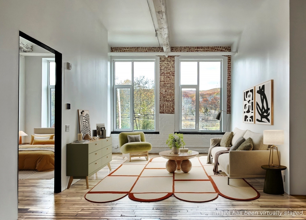 Loft 208 is a 1BR | 1.5BA + study loft at Greylock WORKS — a celebrated former mill conversion — featuring 12.5-foot ceilings, an L-shaped living area, restored hardwood floors, schist countertops, a study, and pantry with laundry. Shared amenities will include a fitness area, serene library, sculptural sauna, graceful loggia, sunset lounge, and a shared rooftop terrace with Berkshire views. The nine-acre campus offers a restaurant, wellness spaces, makers, and cultural programming, and is within 10 minutes of the Clark, MASS MoCA, and Williams College.