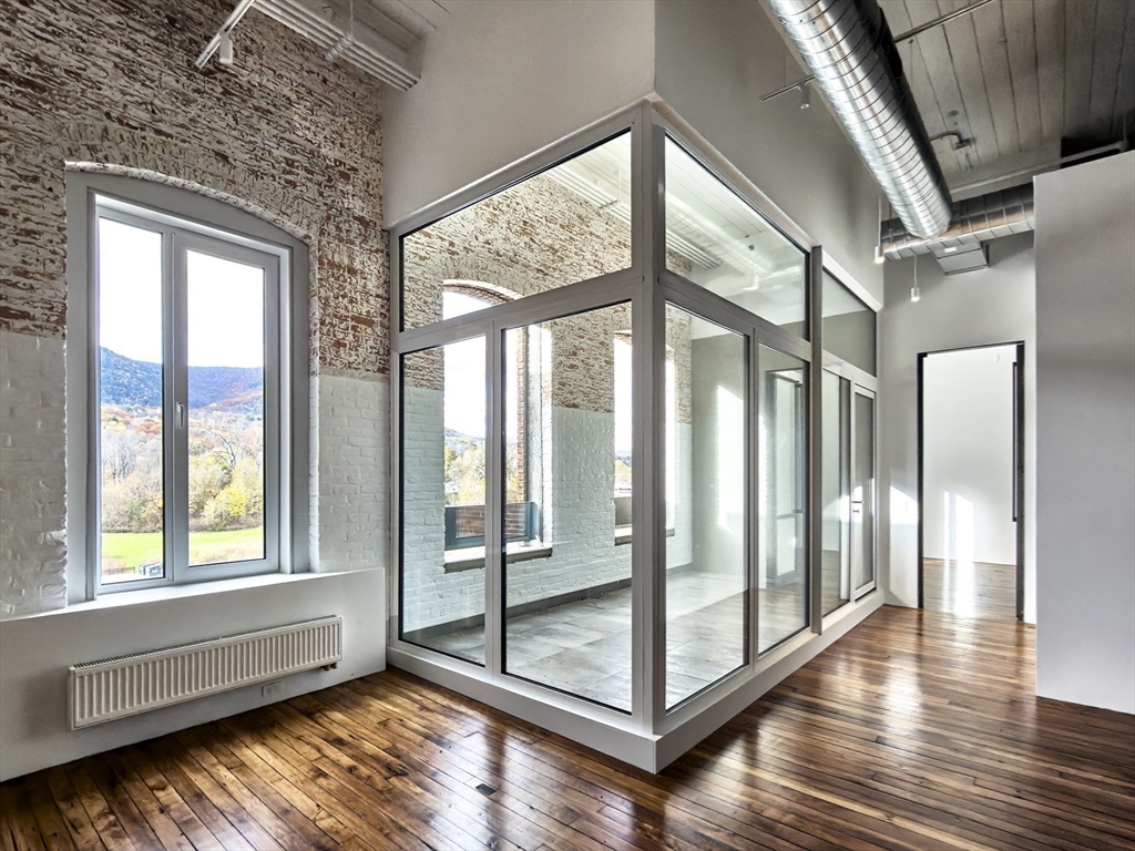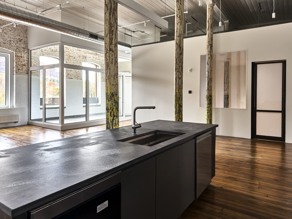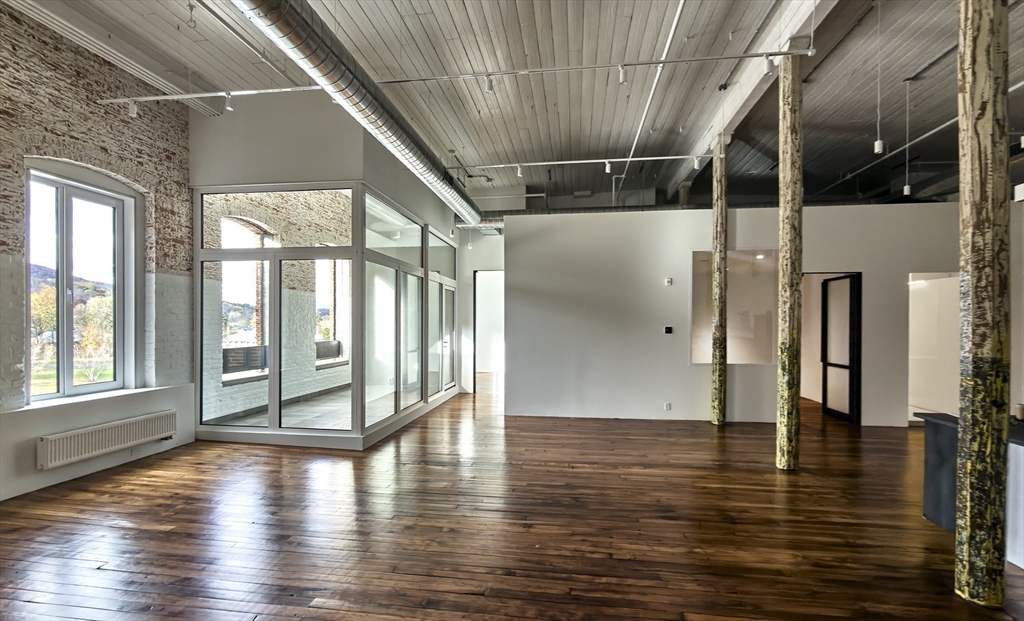 Loft 402 is a south-facing 2BR | 2BA + study Berkshires loft at Greylock WORKS — a celebrated former mill conversion — featuring 16-foot ceilings, restored hardwood floors, schist countertops, a study, and an oversized pantry with laundry. Residents will enjoy a fitness area, serene library, sculptural sauna, graceful loggia, sunset lounge, and a shared rooftop terrace with panoramic Berkshire views. The campus includes a restaurant, wellness offerings, makers, and cultural programming, and is within 10 minutes of the Clark, MASS MoCA, and Williams College.