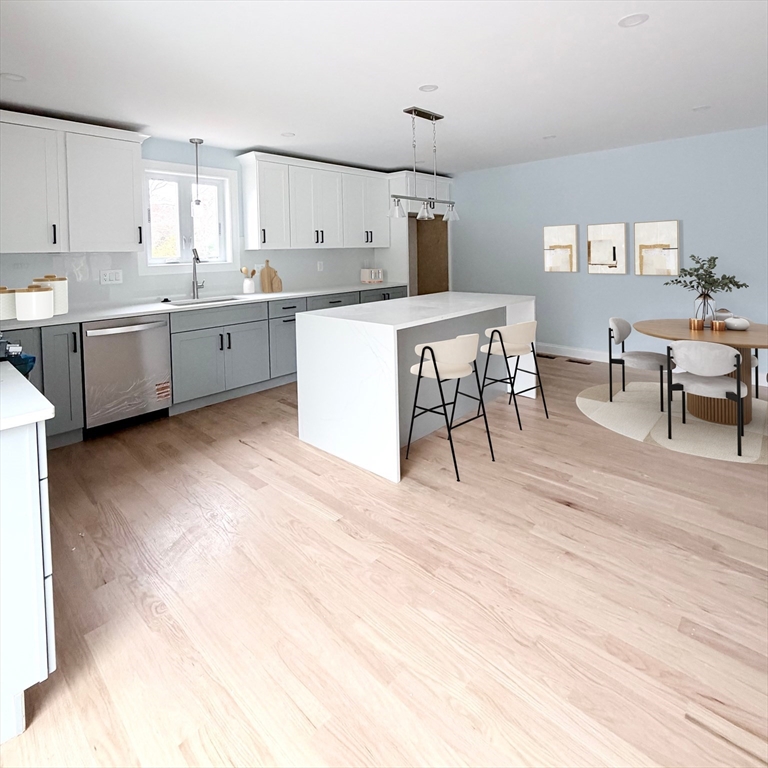 Your new home awaits you! This home offers a beautiful kitchen boasting quartz countertops, top-of-the-line stainless steel appliances, soft-close cabinets, a beautiful waterfall island that offers add'l storage space & a slider leading to a generous-sized deck, perfect for outdoor gatherings. Spacious living room filled w/natural sunlight & a convenient 1/2 bath with washer/dryer hookup. Head upstairs where you'll find the primary bedroom with plush carpeting, a full bathroom that includes a stand-up shower and a dbl vanity floating sink. The second bedroom is spacious & also offers plush carpeting and plenty of closet space. On this level, you'll also find a bonus room that can be converted into an office or add'l living space, and a full bath. Other highlights include recessed lighting, forced hot air, high-efficiency heating/cooling systems, and a one-car garage. Conveniently located on Route 18, close to schools, shopping, restaurants & other public amenities.