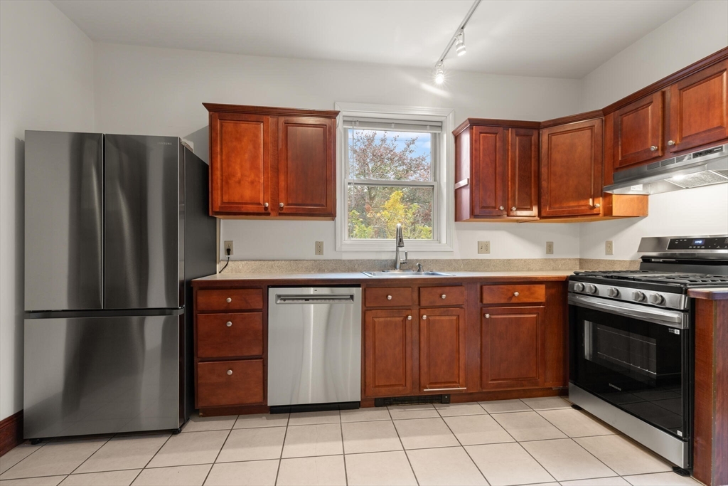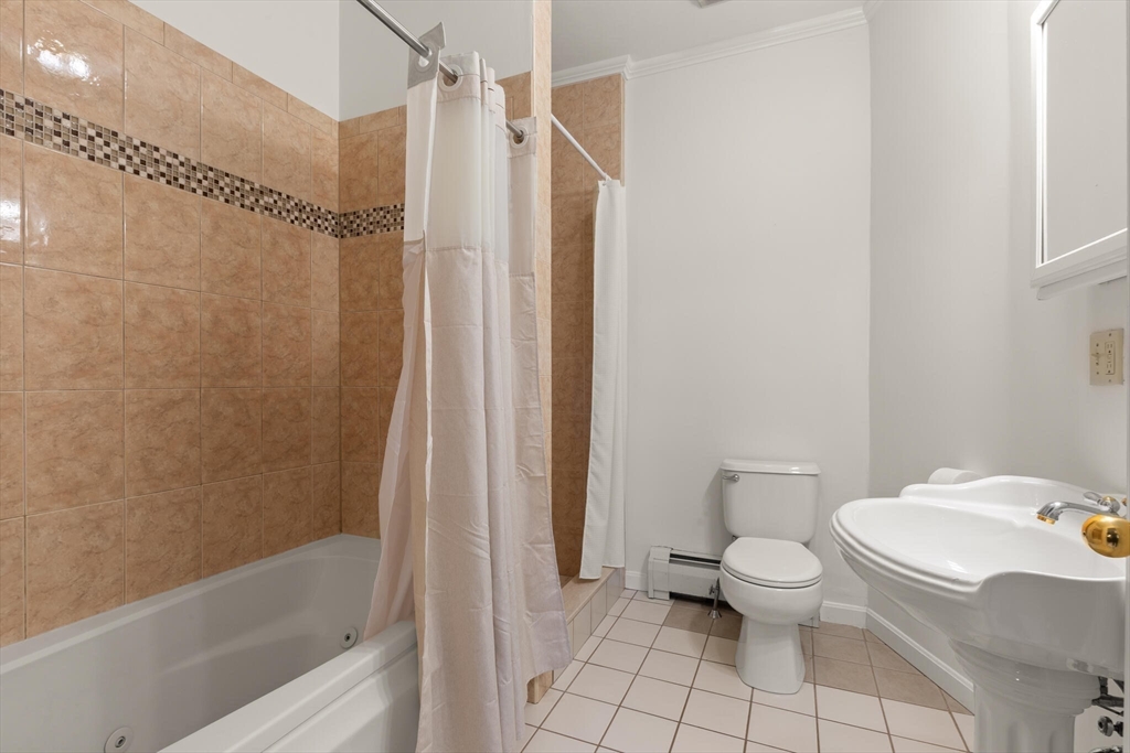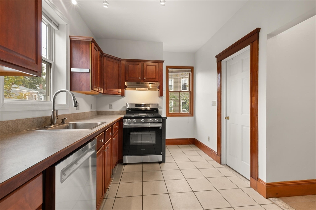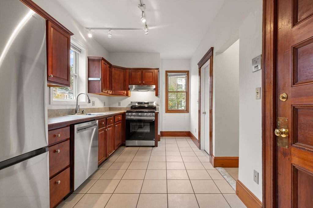 Welcome to this stunning Mansard Victorian, where a classic and elegant grand foyer greets you. This 2 bedroom unit features brand new modern kitchen appliances, blending contemporary style with period details and a smart, functional layout. Enjoy your private entrance from your own deeded parking spot, leading into the kitchen, which includes a nook for a cozy table/bench. A butler's pantry with ample built-ins opens to a spacious living/dining room with large bay windows that flood the room with light. The oversized main bedroom showcases a decorative fireplace with timeless carved wood detailing and classic tile. The second bedroom offers its own large balcony. The beautifully tiled bathroom includes both a shower and a large jetted tub. Residents enjoy a shared garden, lovely plantings, private storage, common laundry (in-units are allowed) and 100% owner occupied building. Walkable to new library, Gilman Sq. T and Union Sq. T, enjoy restaurants/bars/farmers market and more!