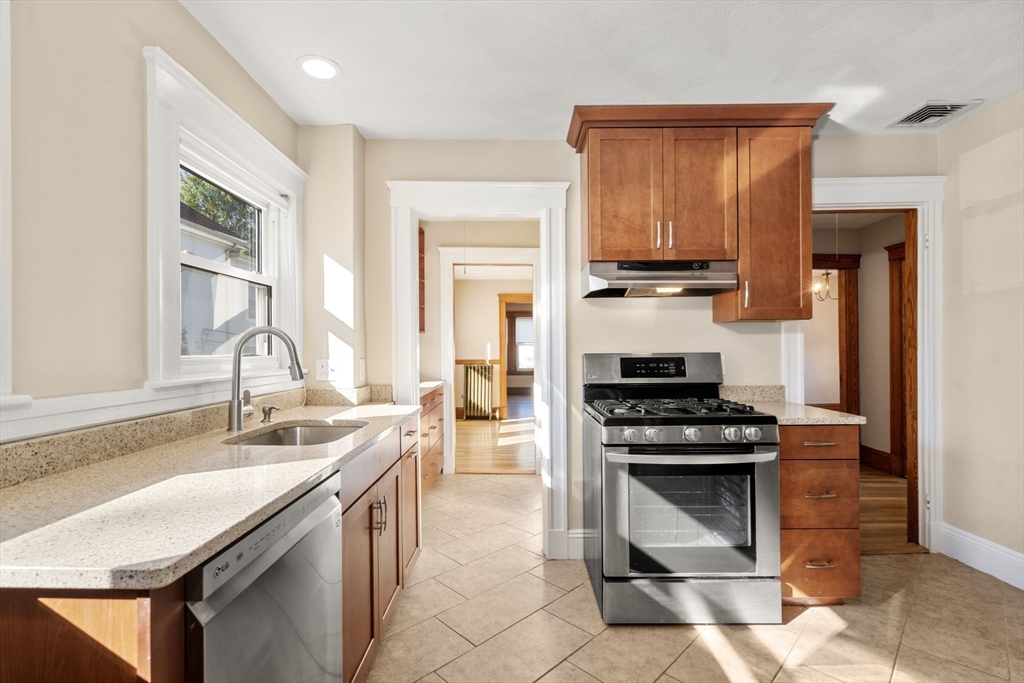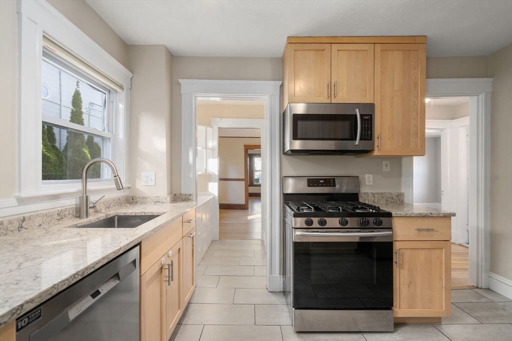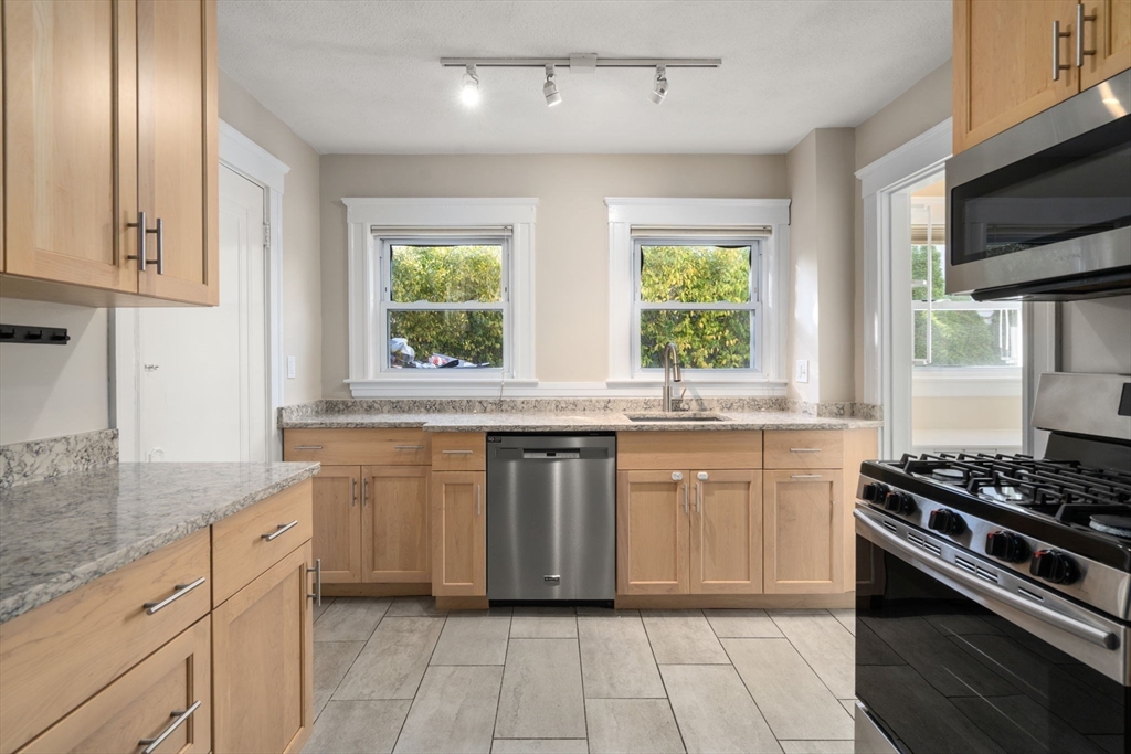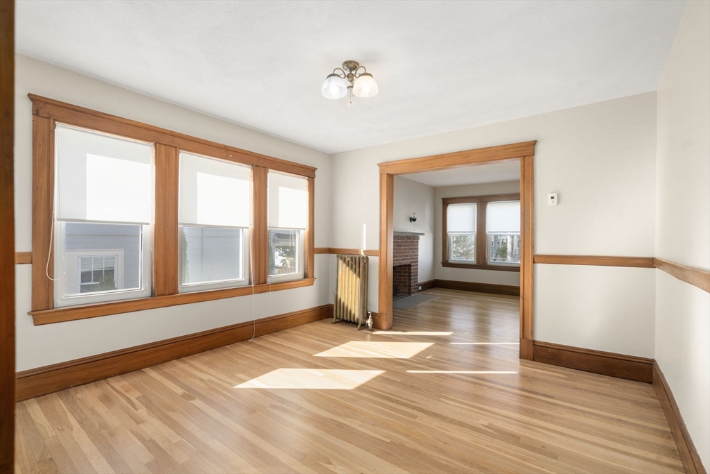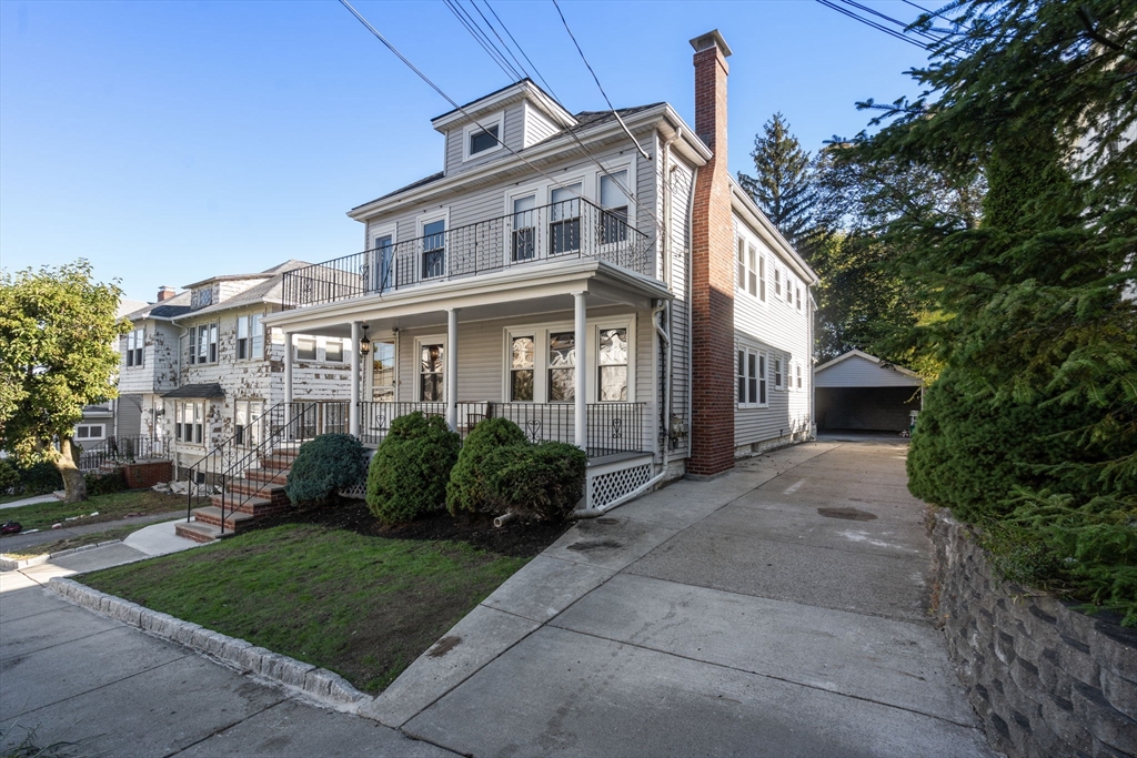 Beautifully renovated sun-filled 2025 classic Watertown 2-family! This rent ready investment or owner occupy offers welcoming living rooms with brick fireplaces, & a charming formal dining rooms with built-ins & a modern kitchen with stainless appliances, gas cooking, granite counters. Kitchens have access to private covered porch and balcony/decks with views. Features include original moldings, refinished hardwoods, high ceilings, newer HVAC with AC, 2025 roof, and freshly painted. Private basement separation with laundry and storage for both units plus shared utility walk-out. Five parking spaces—2 garage & 3 outdoor—and shared stone-terraced gardens. Fantastic location between Belmont St & Mt Auburn, near Arsenal Yards, shops, and dining, with easy access to public transit, Cambridge, and the Mass Pike!