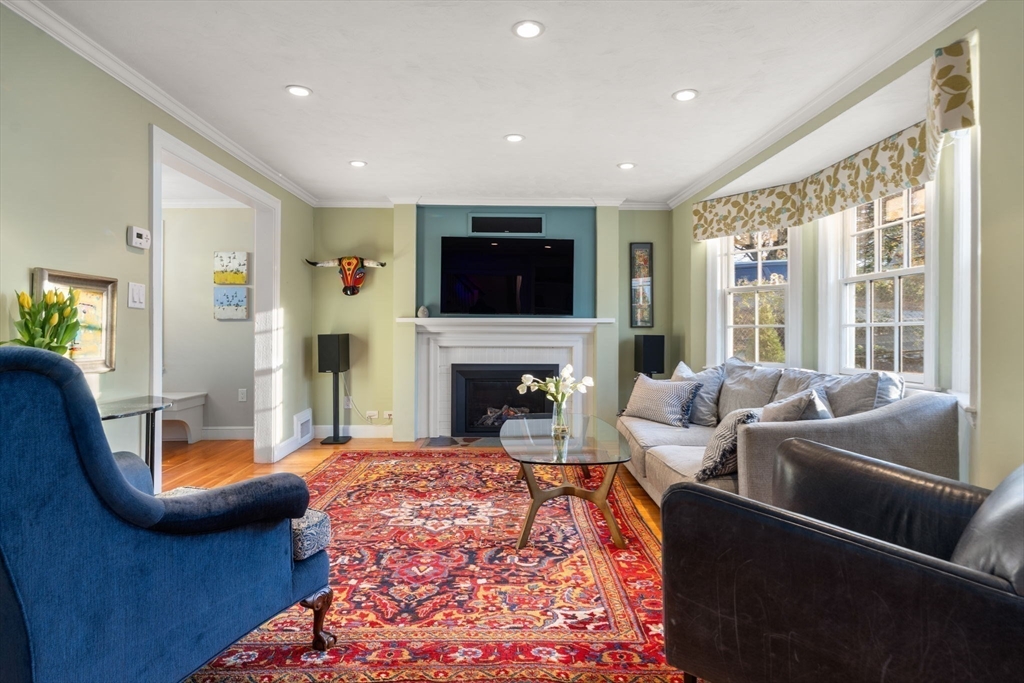 Beautifully updated 5-bed, 3.5-bath home just blocks from the soon-to-open Countryside School. This thoughtfully designed home offers modern amenities & exceptional finishes. The 1st floor features a stunning chef’s kitchen w/ quartz counters, large island & high-end Wolf/Sub-Zero appliances; a bright living room w/ bay window, built-ins, surround sound & fireplace; and a dining room that opens to a sitting area w/ fireplace & sliders to the deck. A half bath & mudroom w/ direct garage entry complete this level. The 2nd floor offers 4 bedrooms, an updated family bath & a luxurious primary suite w/ spa-like bath including marble shower, soaking tub & radiant-heated floors. The finished LL provides exceptional additional living space, including a lg family room w/ built-ins, True refrigerated drawers, surround sound, great storage & French doors to a patio & fenced yard. A 5th bedroom adjacent to a full bath is ideal for guests or office. Close to Rt 9, 128 & 0.3 miles to the Highlands T