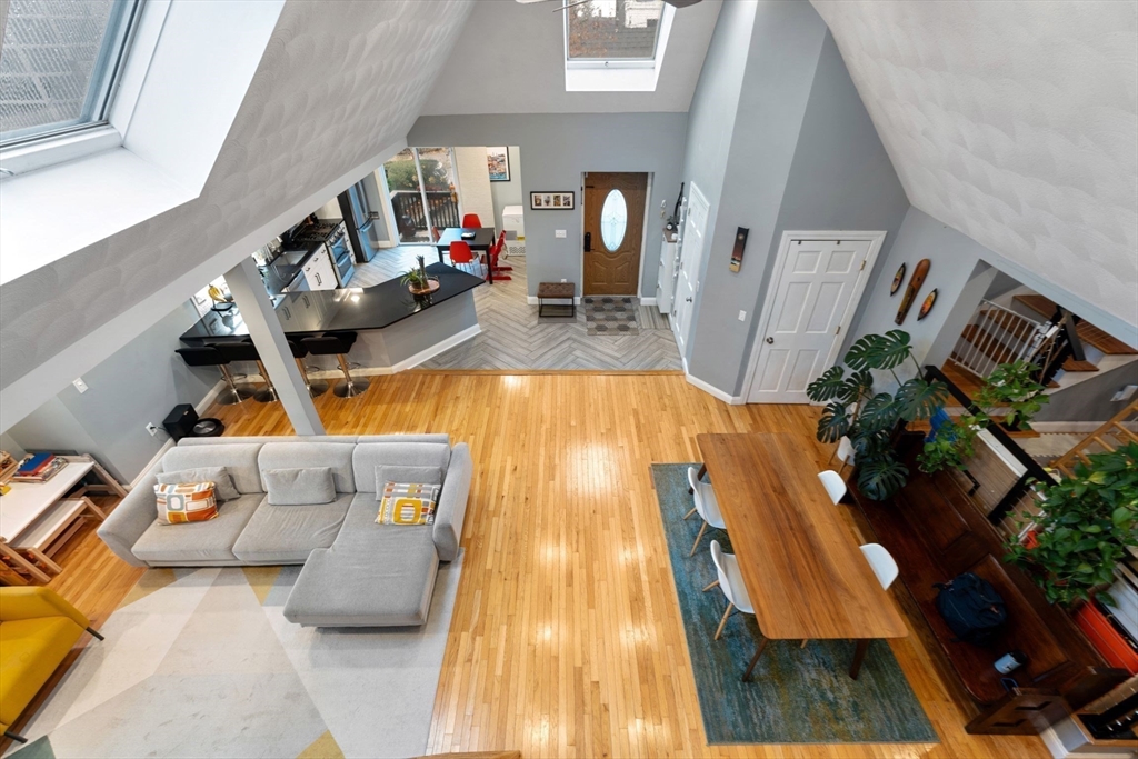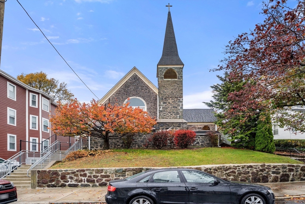 One of a kind 3+ Bedroom, 1.5 Bathroom home in Revere’s Beachmont neighborhood. Set within the historic former Saint Paul’s Episcopal Church, this recently renovated and newly expanded home offers soaring cathedral ceilings, dramatic skylights, and exquisite architectural details that provide an abundance of natural light throughout. The main level features gleaming hardwood floors, a brand new kitchen, updated appliances and granite countertops. A versatile loft space provides not only room for a study but also storage. There is one bedroom off the living room and a full bathroom with a soaking tub and pretty tiled floor. The primary bedroom and third bedroom is just off another den, currently being used as a playroom. The large primary has tons of closet space. Walk up the modern, newly built staircase to an office space and an additional lofted guest room. In unit W/D and mini splits throughout. Steps from MBTA Blue Line and and walking distance to Short Beach, local cafes and more!