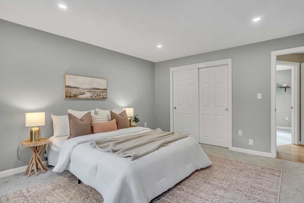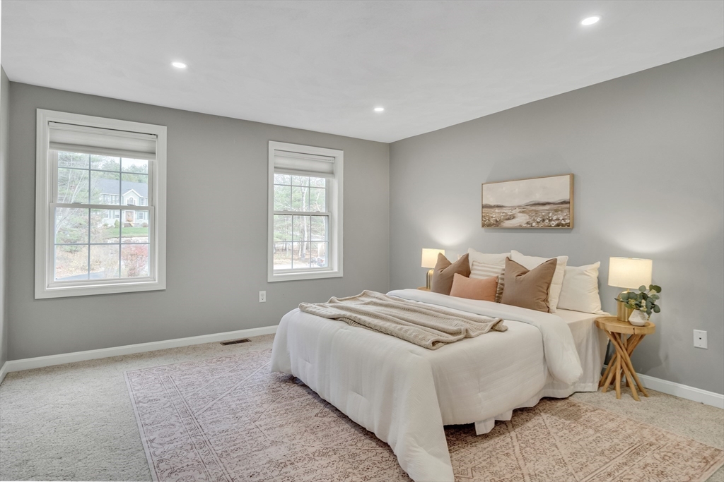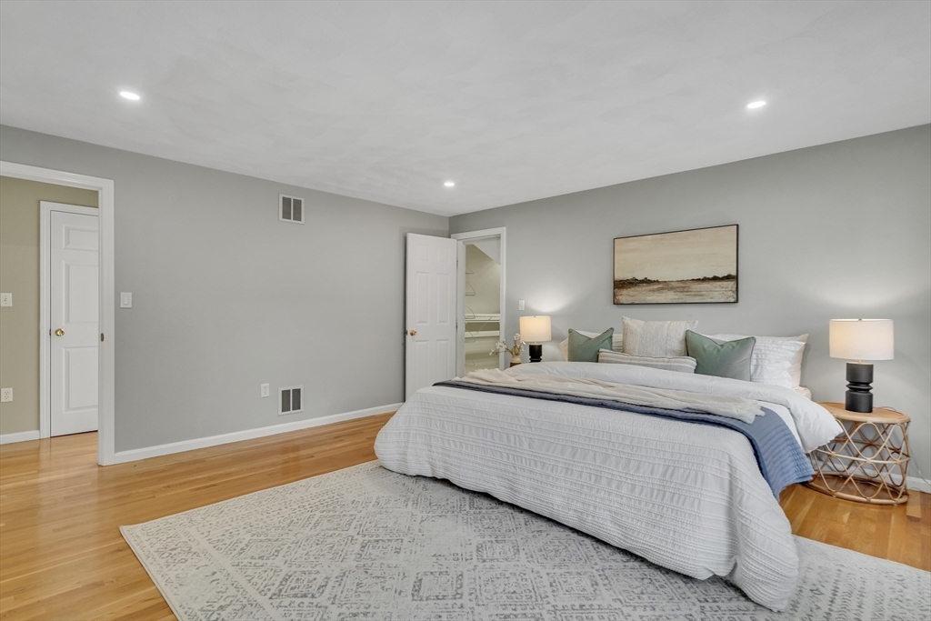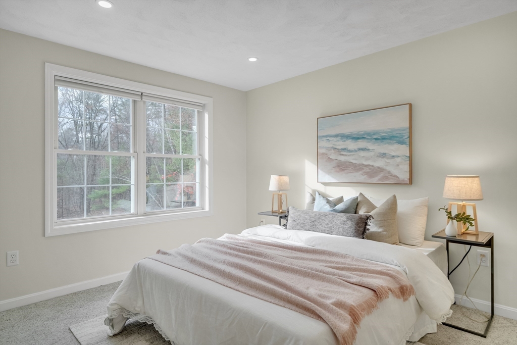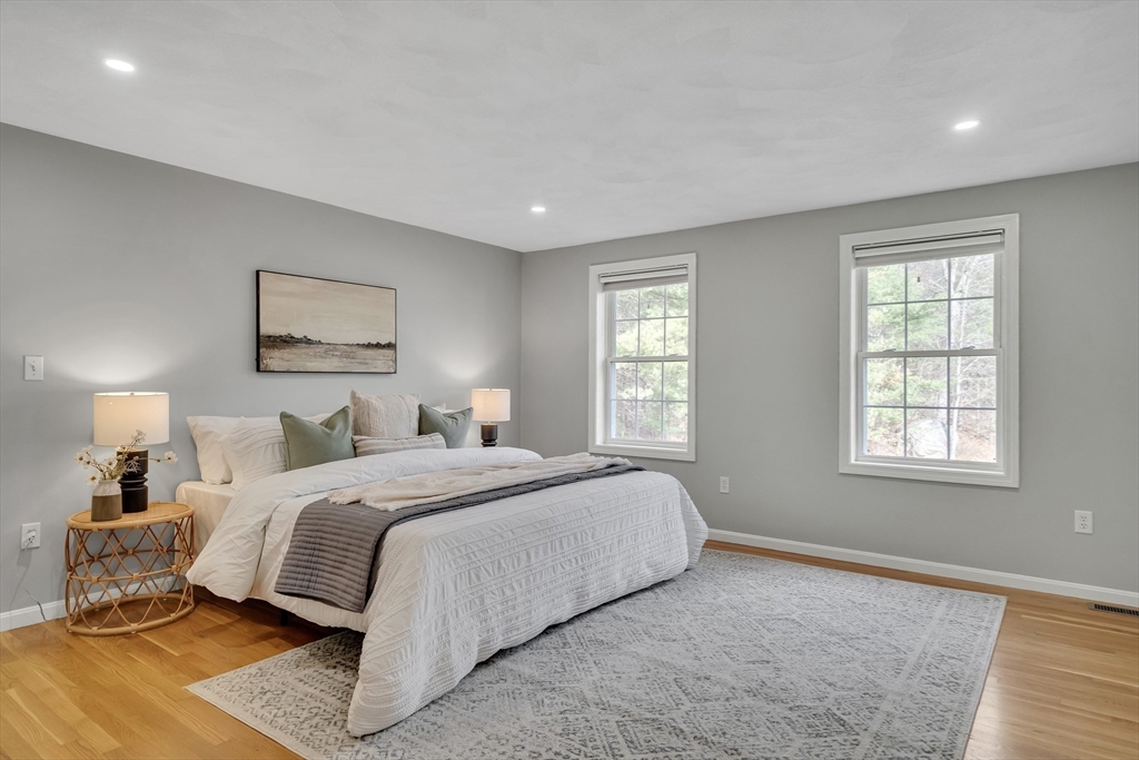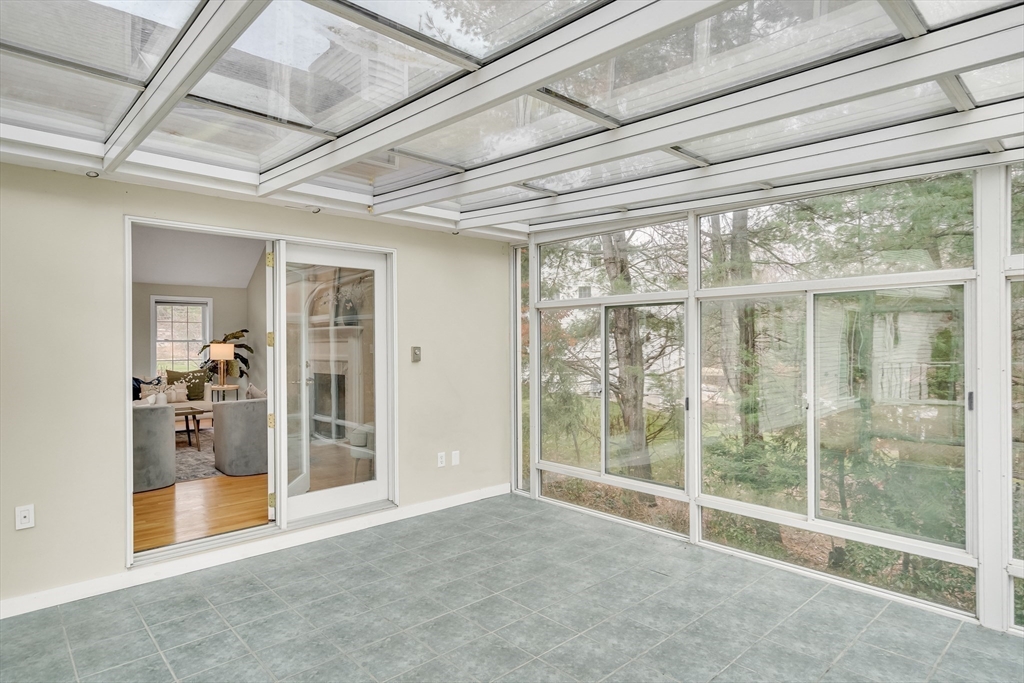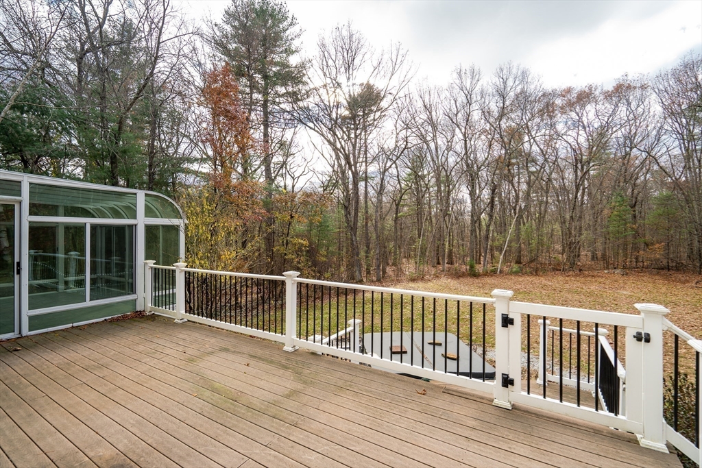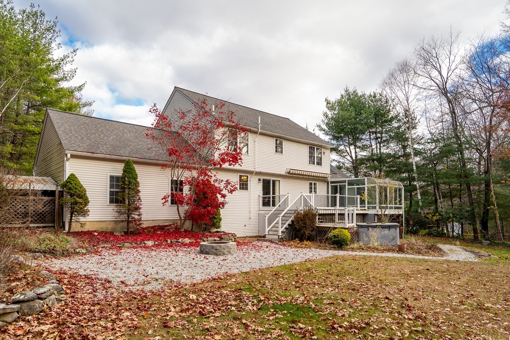Stunning 4 bed 2.5 bath spacious single family at the end of a picturesque cul-de-sac in Brittany Estates. Backed by 50+ acres of conservation land and the Westford Trail system, this home offers exceptional privacy and neighborhood charm. Beautiful hardwood floors flow throughout the main level, presenting an open-concept kitchen and spectacular family room featuring cathedral ceilings and a cozy fireplace. Adjacent, discover a versatile 4-season sunroom and expansive multi-level decks complete with a retractable canopy and relaxing jacuzzi. The second floor showcases four pristine bedrooms, including a luxurious primary suite with a walk-in closet, dedicated en-suite bathroom, and an additional closets for storage. The finished walk-out basement offers additional living space with a refrigerator, and ample room for a home office, recreation area and home gym. Step outside to a covered workshop shed, then continue to the expansive private backyard.
