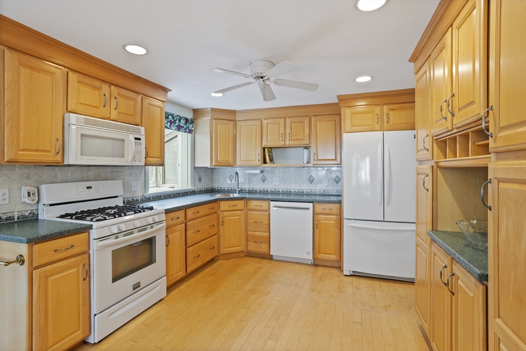 Welcome to this well-loved, long-time family home—proudly coming to the market for the first time! Tucked within a quiet, inviting neighborhood, this spacious colonial offers incredible flexibility w/a versatile floor plan, perfect for a variety of lifestyles. Main level features a bright LR & eat-in kitchen that opens to a 3-season porch overlooking a level backyard, perfect for gatherings, play, or quiet relaxation. An expansive primary BR & add’l BR are conveniently on this floor. Head upstairs to find the home’s most flexible living area—an excellent potential in-law suite. With a spacious family room, 3 BR’s & updated full BA, this level provides comfort & privacy for guests, extended family, or teen retreat. LL includes a bonus room, office, over-sized laundry room w/half bath & access to the 1-car garage. Also features Weil-McLain boiler & hot water system(2020), plus peace of mind w/automatic backup generator. Filled w/warmth, potential & ready for a new chapter.