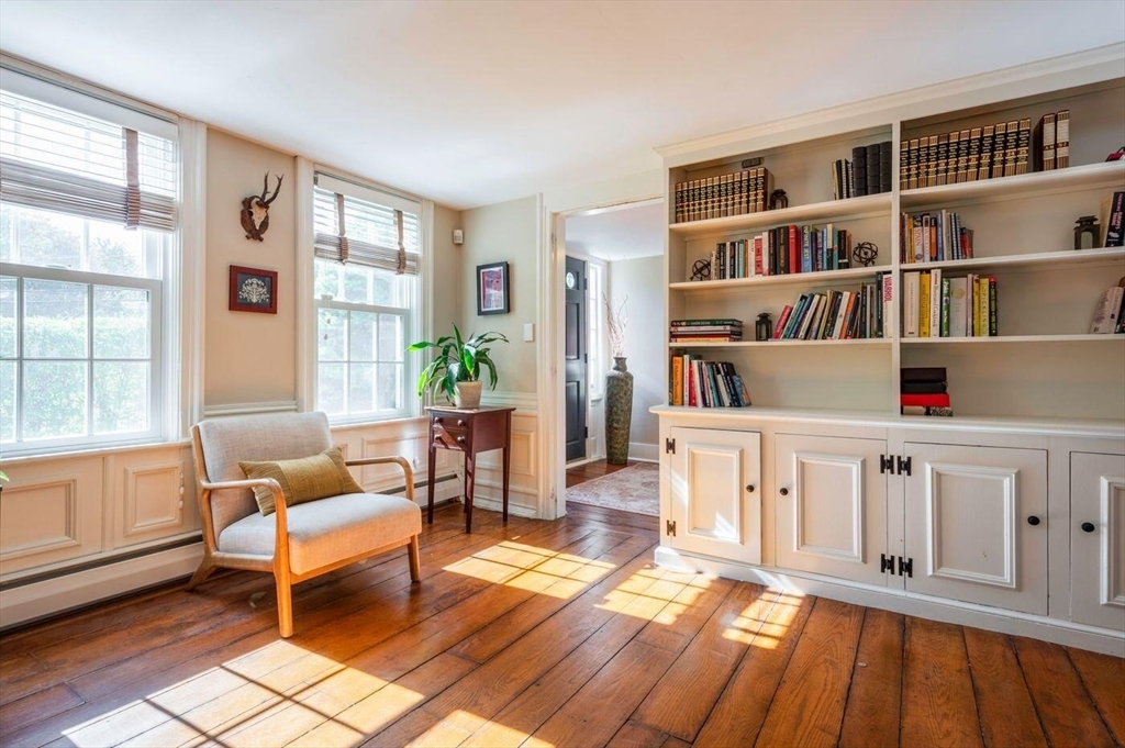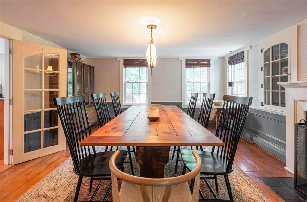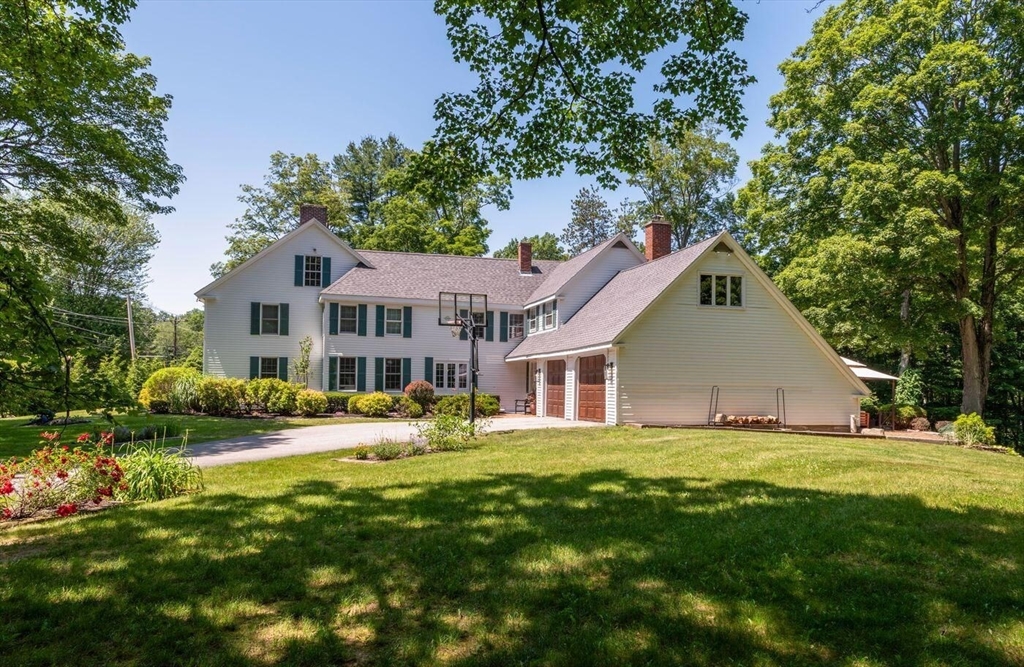 Step into timeless sophistication at the historic Peaslee House, where classic New England charm meets modern refinement. This meticulously preserved Colonial offers an inviting blend of heritage and comfort, featuring five original working fireplaces, wide-plank flooring, and a cozy office/library. The gourmet eat-in kitchen boasts custom cabinetry, double ovens, and radiant flooring - perfect for culinary enthusiasts. Upstairs, the serene primary suite impresses with a fireplace, cedar-lined closets, and a spa-inspired bath with a custom tiled shower. Designed for flexibility, the home accommodates multigenerational living or extended guests with ease. Outdoors, enjoy two expansive brick patios, an 18x36 in-ground pool, and lush perennial gardens framed by a newly designed hardscape. A versatile outbuilding completes this exceptional property. Own a piece of New England’s history, thoughtfully updated for today’s lifestyle.