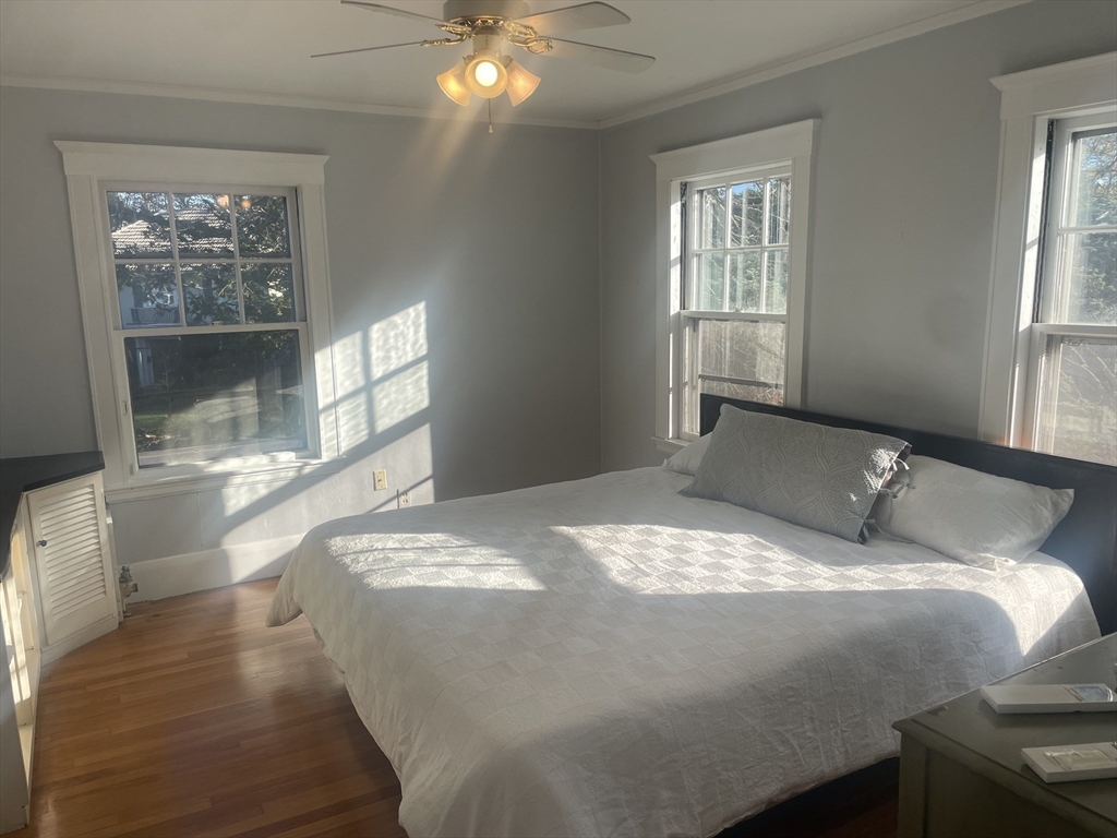 Beautiful Classic & Charming Colonial in Swampscott's Beach Bluff neighborhood is available for rent!! This stately home has been affectionately maintained & features 4 bedrooms, 3.5 baths, hardwood floors, & high ceilings thru-out.Timelss elegance begins as you enter the large foyer.To the right is the FP'ed LR w/adjacent sunroom w/windows galore & built-in cabinetry.To the left of the foyer is the formal dining rm w/2 built-in china cabinets. Off this room is an enclosed sunporch, the perfect place to lounge while listening to birds, feel the warm breeze & entertain guests The newly painted kitchen features brand new SS appliances, dining area & 1/2 bath.There's also a walk out to the garage.The massive primary bedroom includes 3 closets & an ensuite bathroom w/shower. In addition to 3 large bedrooms on the 2nd floor & full guest bath, there's an additional room that can be used as an office.3rd level has the 4th bedroom & bath w/eggshell tub.Solar Panels for reduced electric costs!