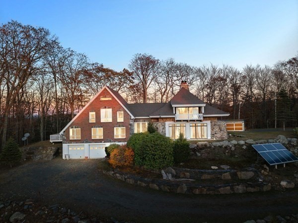 Discover unmatched privacy and sweeping mountain views on 230+ acres with 2,000+ ft of pristine Secret Lake frontage. Custom built as a fully self-sufficient luxury retreat, this post-and-beam Contemporary offers active solar power, an artesian well, and a generator for true year-round independence. Inside, soaring ceilings, exposed beams, and a massive floor-to-ceiling stone fireplace create a warm and timeless atmosphere. The gourmet kitchen features a Grand Herald stove and a full prep kitchen—ideal for hosting, entertaining, or creating incredible meals against a stunning natural backdrop. The private main suite includes its own balcony with breathtaking views. Multiple decks and an interior balcony capture light, scenery, and serenity from every angle. Heated 2-car garage plus additional storage for vehicles or boats. Convenient to Routes 2/32/202 with easy access to VT/NH. Ideal for retreat property, campground, seasonal waterfront homes, or future recreational use.