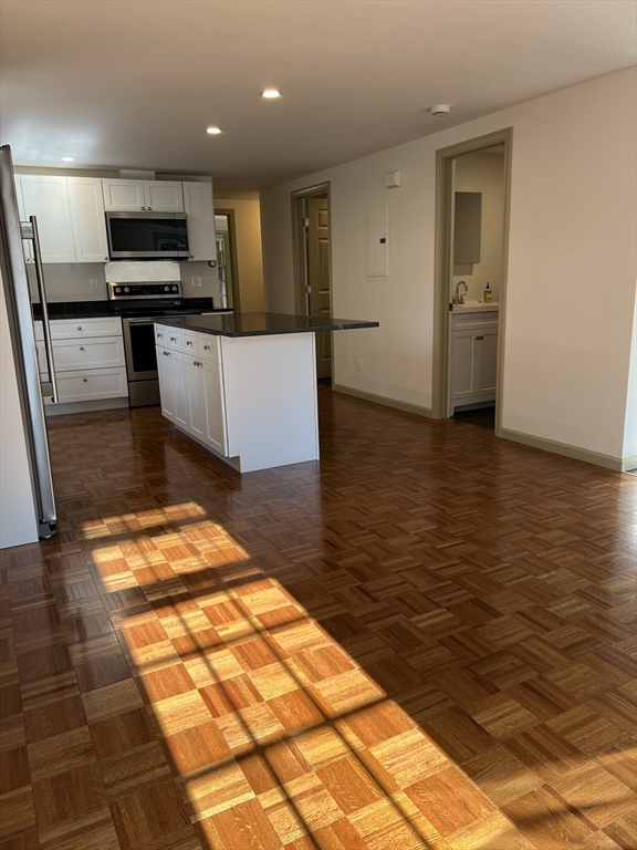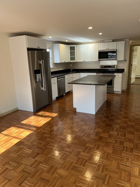 Wow! Spacious unit featuring 3 Bedrooms, 2.5 baths in village setting. Newly designed kitchen with honed granite countertops and island open to sunny living room space with parquet flooring. First floor end unit on cul de sac.Brand new Stainless Steel appliances.One room( largest bedroom) has an exterior door and en-suite bath with shower. Close to MBTA, Beach, shops and restaurants in quaint Manchester by the Sea. Available now.
