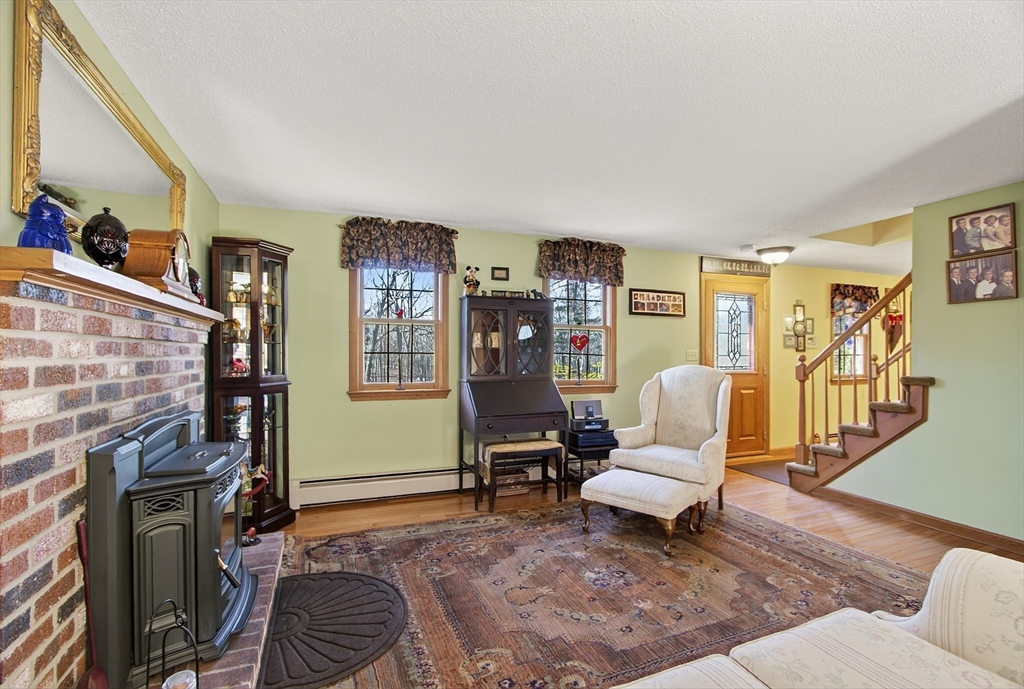 Welcome home to this 3-bedroom, 1.5-bath Colonial showcasing pride of ownership inside and out. Set on a nicely landscaped lot, this home offers an inviting first floor with an open dining room-to-kitchen layout featuring abundant cabinet and counter space. The kitchen flows seamlessly into the front-to-back family room, complete with direct access to the mahogany deck, patio, and hot tub—perfect for entertaining or relaxing outdoors. Enjoy the additional fire pit area for evening gatherings. A separate living room offers a cozy Harmen pellet insert and sitting area, while the remodeled half bath with laundry completes the main floor. The second level features a spacious main bedroom with walk-in closet, two additional bedrooms with new carpeting, and a remodeled full bath. The lower level provides ample storage space and is equipped with a generator hook-up. Additional updates include a new water system, new well bladder, new oil tank, and a convenient 2-car garage.