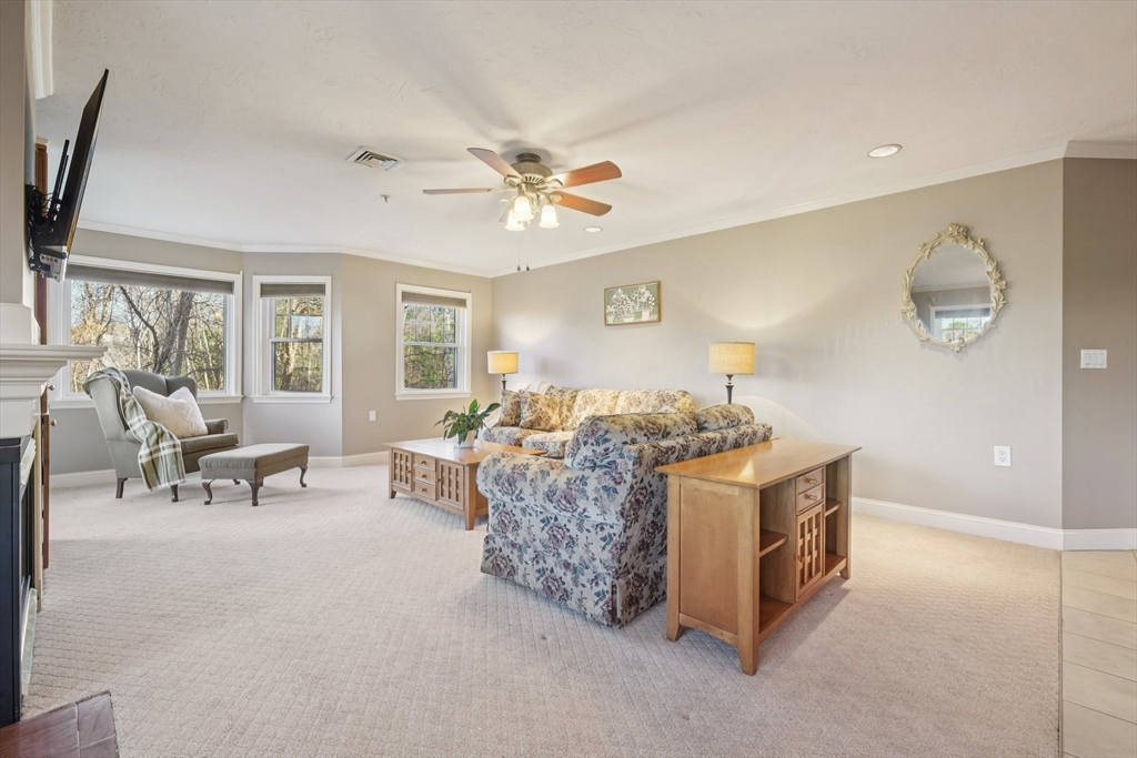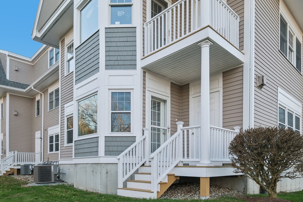 Start the New Year off in style in this well maintained first floor end unit. This stylish home features a spacious open floor plan with 2 large bedrooms both ensuite, a large kitchen with an abundance of cherry cabinets, island which comfortably seats 4, and stainless steel appliances. Generously sized livingroom features a cozy gas fireplace, built ins, and access to the deck. Plenty of room for gracious entertaining in the dining room. Lots of storage throughout and extra storage in the garage. 2 assigned garage spaces. Don't miss your opportunity to live in this well managed 55+ community conveniently located near shopping, restaurants and Route 3.