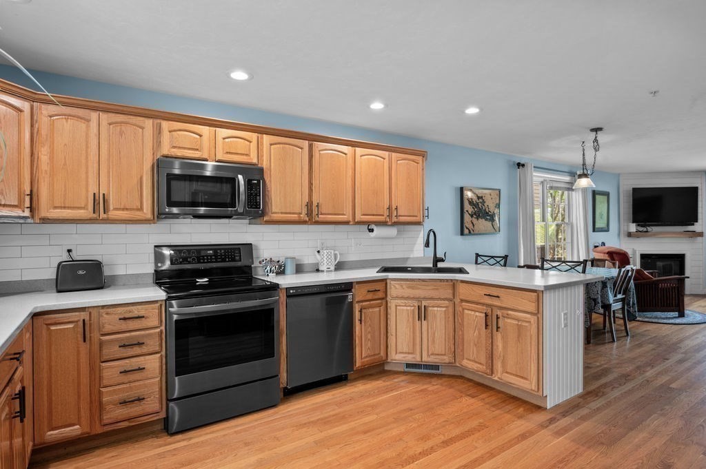 Welcome to 28 West St, Unit 4A in Ayer! A beautifully maintained end-unit townhome offering space, comfort, and unbeatable convenience! The main level features an oversized kitchen with tons of cabinet space, stainless steel appliances, and a breakfast bar perfect for quick meals or morning coffee. The bright living room offers a cozy corner fireplace, stylish accent wall, and a slider that opens to your private back deck, ideal for relaxing or entertaining. A convenient 3/4 bath completes this floor.The second level includes two large bedrooms, a full bath, and in-unit laundry (washer/dryer included). The top floor adds incredible flexibility with a spacious bonus room, great as a third bedroom, home office, workout room, or extra living space. Enjoy even more convenience with a 1-car garage, storage/utility room, and extra guest parking. Location is everything, you're just 0.1 miles from the commuter rail, shops, restaurants, a and the scenic Nashua River Rail Trail.