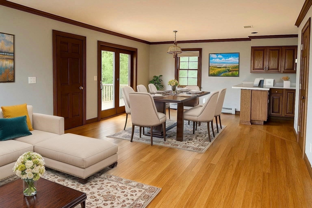 One of a kind rental in South Dartmouth offers an open floor plan on the main level with a living room, dining room, kitchen, and 1/2 bath. The second level boasts 3 bedrooms with skylights and hardwood floors. There is a full bath on the second level as well. The finish basement has a large area that can be a great additional family/rec room or home office as well as an additional 1/2 bath and laundry area. Home features central air, a private deck, and a 1 car garage.