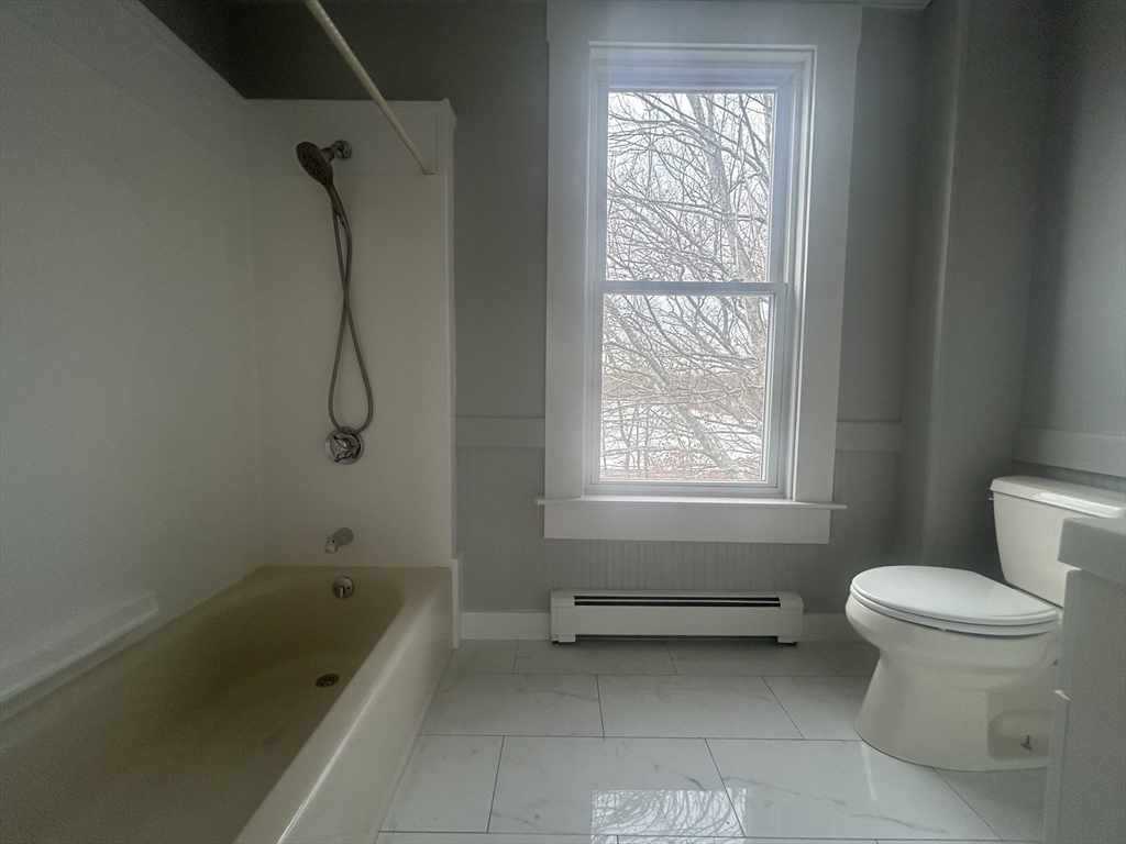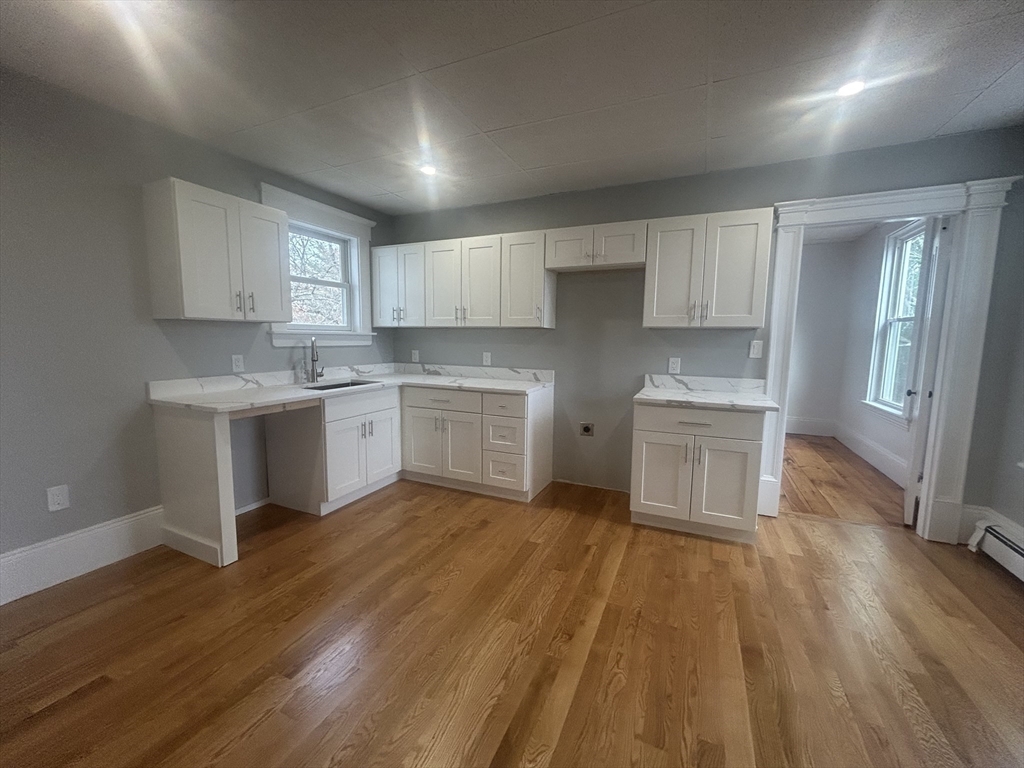 Newly renovated unit in this charming two family home! Beautifully updated three bedroom second floor unit with a wonderful blend of modern amenities and old world charm. Offering hardwood floors throughout, brand new spacious kitchen with granite countertops and stainless appliances and lovely bathroom. Further enjoy private laundry which comes equipped with a brand new washer & dryer. Conveniently located just off Main Street and close to shopping, restaurants and the rail trail. Rent includes water, sewer, off street parking for 2 cars, lawn care and snow removal. Love where you live and live where you love.