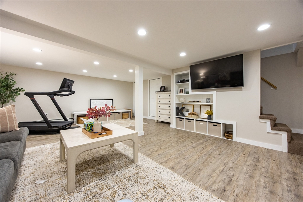 Spacious 4–5 bedroom, 1.5 bath home offering 2,100 sq ft of versatile living space on a 0.13-acre lot. The inviting cathedral-ceiling living room features exposed beams, a brick-walled fireplace, and large windows that fill the space with natural light. Enjoy an enclosed 4-season porch with slider to the deck, plus a wood deck and fenced-in yard—perfect for outdoor living. The bright, open floor plan includes a kitchen with ample counter space and a bath with a double vanity. The lower-level 17x21 family room offers exterior access, ideal for extended living, office, or play area. A storage shed provides added convenience. Located near highways, shopping, transportation, restaurants, and more—easy access to everything.