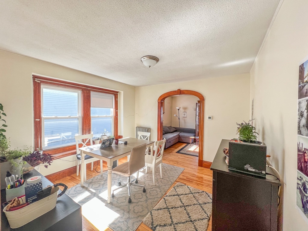 Well maintained 1st level unit in convenient West Somerville and Tufts University area. This 2-bedroom unit comes with a four-season porches/home office. The bright dining room features built-in China cabinet connects with large living room. Newer shining hardwood floor is through out. 1 off-street tandem parking. The location is less than half a mile to Tufts University & the future Green Line station at College Ave, less than one mile to West Medford Commuter Rail Station and one mile to Davis Square. One block away from Dilboy Stadium & recreation area. Easy access to Route 2 & 93. Available now! Pets are welcome!