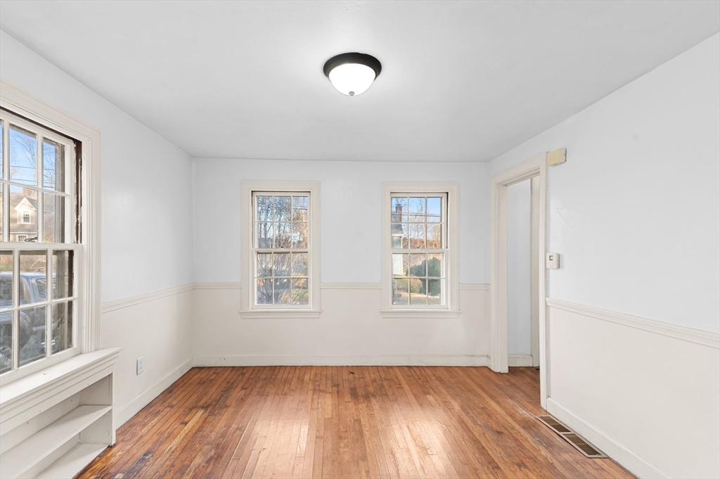 This charming 2-bedroom, 1-bath residence is filled with character, warmth and timeless details. This home offers hardwood floors throughout, beautiful built-in shelving and windows that bring in plenty of natural light. Enjoy extra living space in the family room on the main level, perfect for relaxing or entertaining. The fireplace in the living room adds the perfect touch of comfort for New England seasons. A forced hot air heating system installed in 2018 provides efficient, reliable warmth all winter long. This property offers plenty of storage with two backyard sheds and an attached garage. With the classic details and flexible living spaces, this home has endless potential for its next owner to make their own!