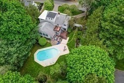 Welcome to the prestigious Piety Corner community! This stately expanded and beautifully renovated Colonial offers refined living and remarkable space. Set on a private ½ acre oasis with an inground pool, deck, & patio, the home is ideal for outdoor enjoyment and entertaining. The spectacular rear great room addition showcases a dramatic cathedral ceiling and opens seamlessly to the gourmet cherry and granite kitchen with island bar, built-in desk, and top-quality stainless steel appliances. A screened porch, fireplaced living room, den, & formal dining room with built-in shelving and wainscoting add warmth and character. The impressive primary suite features a walk-in closet, Jacuzzi bath, sitting area, & private balcony with spiral staircase to the yard. A finished top-floor bedroom offers excellent privacy for guests, teens, or home office use. The lower level includes a rec room, office, and full bath. Younger systems, second-floor laundry, & garage complete this exceptional home.