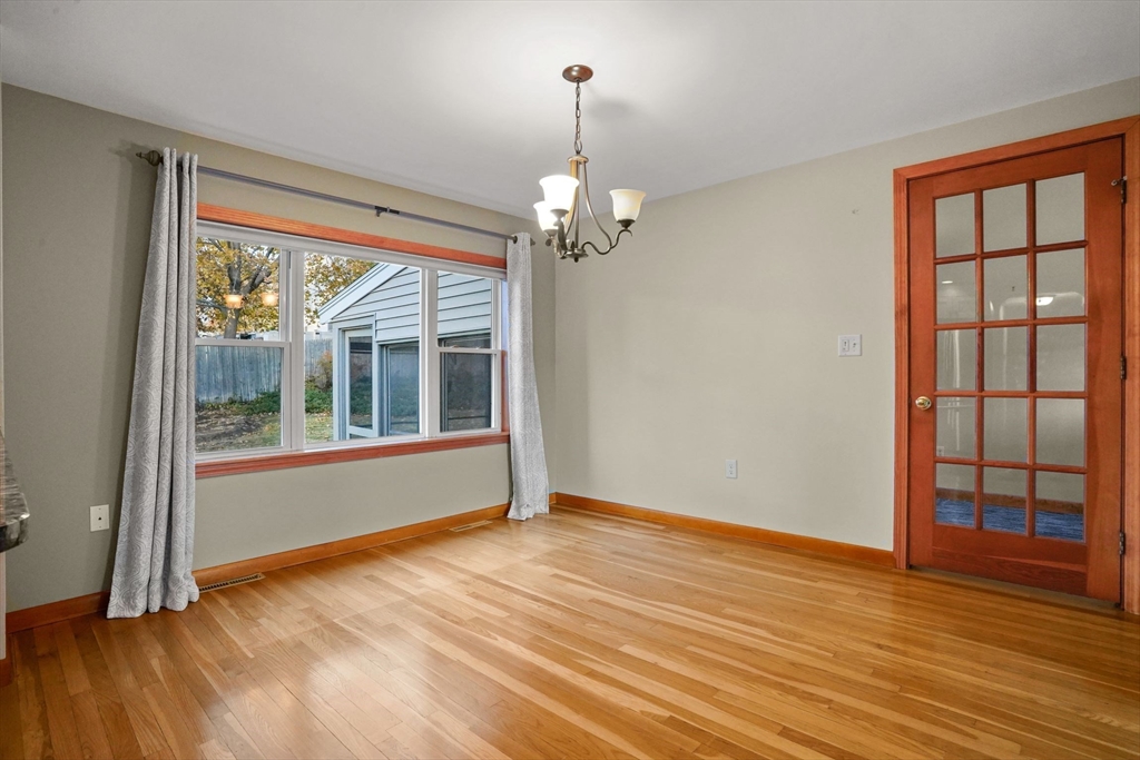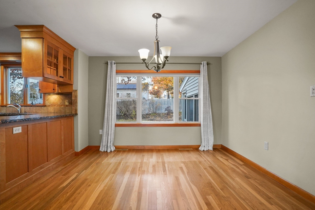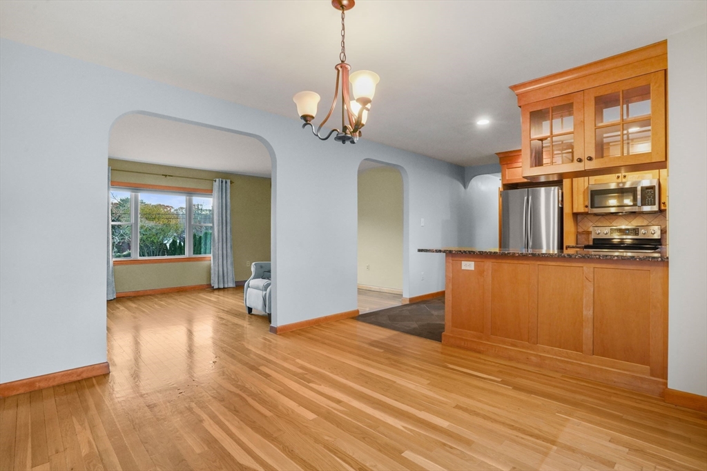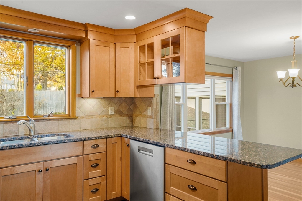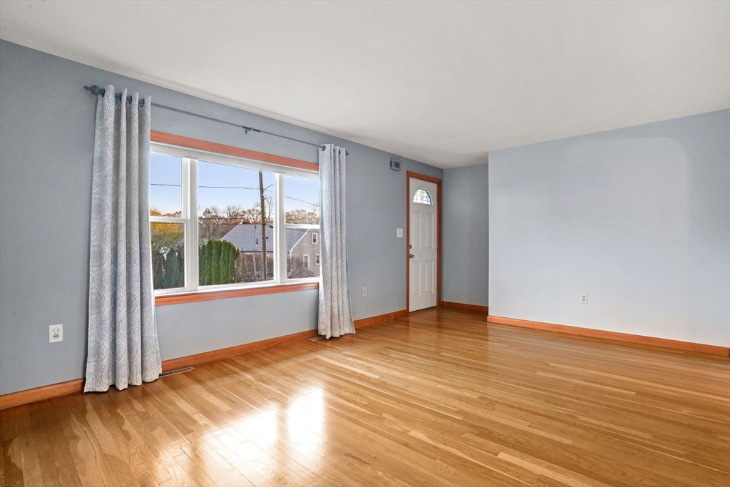 Beautifully updated 3-bedroom, 1.5-bath ranch offering 1,224 sq ft of comfortable living space on a quiet cul-de-sac in one of Weymouth’s most convenient neighborhoods. A charming covered front porch welcomes you inside to gleaming hardwood floors throughout and a bright, updated eat-in kitchen featuring granite countertops, stainless steel appliances, and a breakfast bar. The modern full bath complements spacious bedrooms. A screened-in porch invites you to relax and enjoy views of the expansive backyard with mature plantings and a vegetable garden. The huge full basement offers endless possibilities for additional living space, workshop, or gym—with existing plumbing for a full bathroom and bulkhead access. Located near Weymouth Landing, close to the new library, restaurants, commuter rail, and recreation areas including beaches, parks, and trails. Comfort, modern updates, and classic New England charm—truly a place to call home.