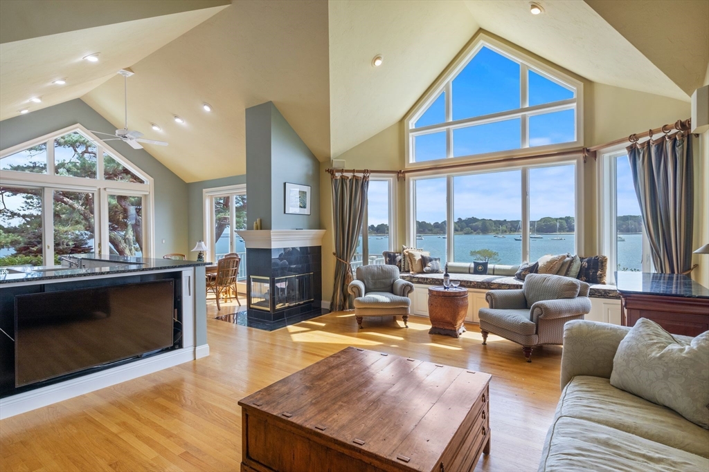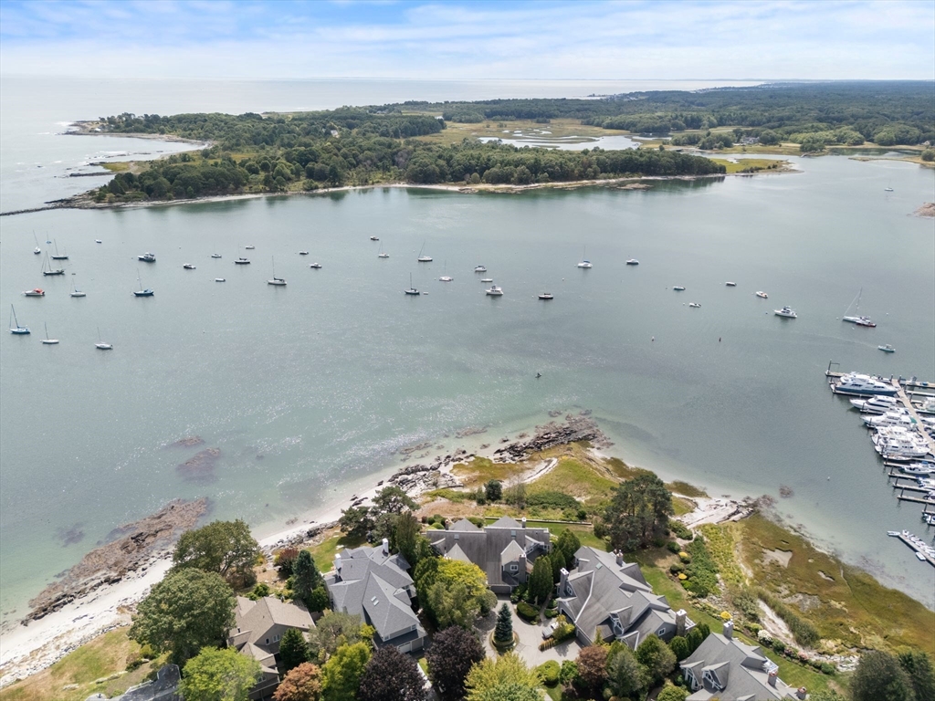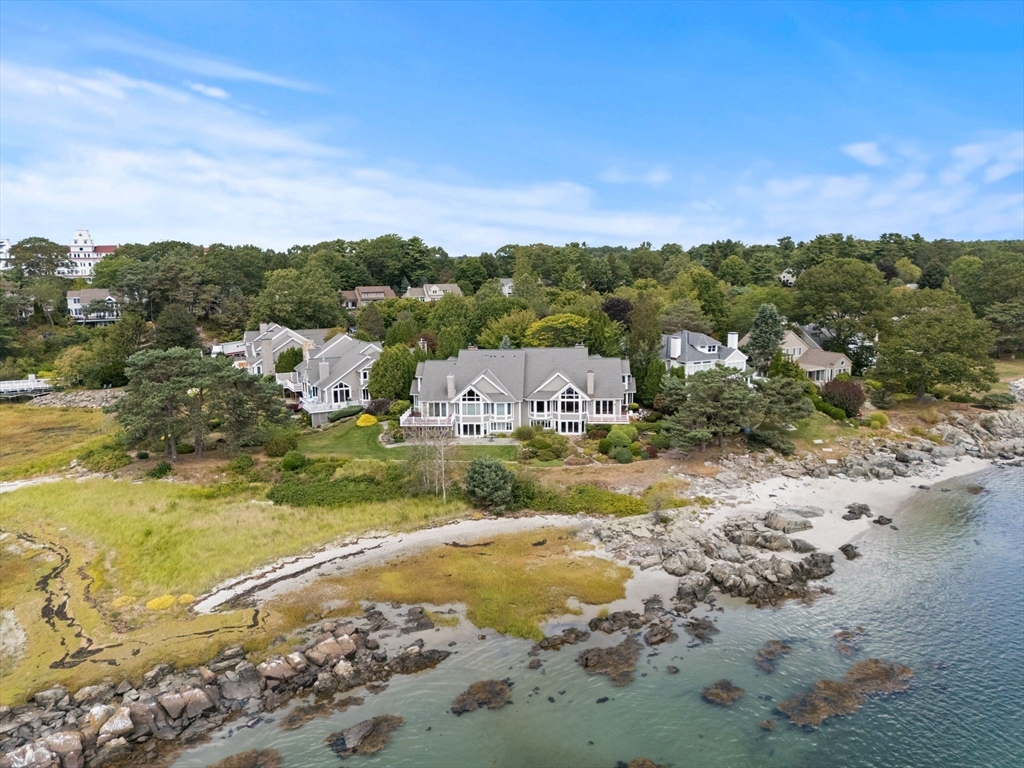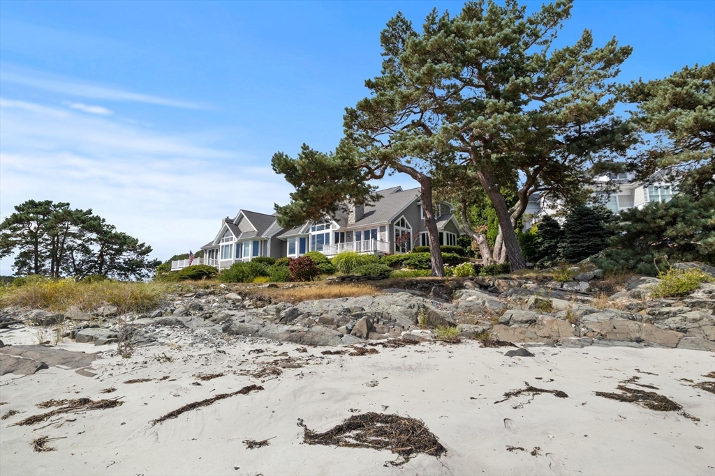 Waterfront in the Wentworth Community. This rare opportunity is one of only 6 waterfront townhomes, offering sweeping views of the Isles of Shoals, Little Harbor, & the Wentworth Marina. Set along sea grass, a sandy beach, & beautifully kept gardens, this home features a 1st floor primary suite and 3 levels of sun-filled living with soaring ceilings & walls of glass framing the ocean. Boat lovers will enjoy watching yachts & fishing vessels pass by, especially at sunrise. The open first-floor layout is perfect for entertaining, and the inviting den with built-ins offers a great space to work or relax. The second level includes 2 additional bedrooms connected by a striking walkway overlooking the water. The finished lower level opens through French doors to the garden and beach. Enjoy a deeded rights to Little Harbor Beach, plus an association pool, tennis, and pickleball. Steps to dock-front dining and the Wentworth by the Sea Hotel, and minutes to downtown Portsmouth.