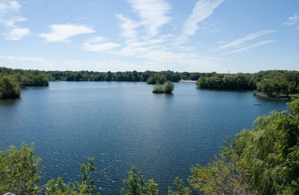 Beautiful top-floor 2BR/2BA condo with stunning Falls Pond views from living room and both bedrooms. Open floor plan with hardwoods, granite kitchen w/island and SS appliances. Living room features marble-surround electric fireplace and sliders to private balcony. Primary bedroom offers jacuzzi-style tub and separate shower. In-unit laundry. Fitness and storage room in building. Two parking spots (one covered). Convenient to major highways. Approximate dimensions: Kitchen 14x15, Bedroom 12x14, Bedroom 10x14 and Living Room 12x19.